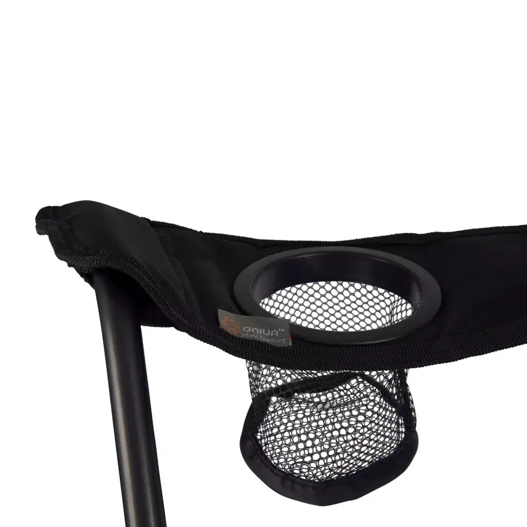 Spend more time sun-gazing, star-gazing, and straight up relaxing with the no-fuss PTZ Camp Chair, your go-to portable chair with a simple and quick set-up design, a natural recline, a mesh drink holder in the right armrest, and a sturdy frame that folds into a drawstring carrying bag with shoulder strap. This folding chair is a true chameleon - use it as a picnic chair, a camping chair, or a good ol' sitting-on-your-porch-watching-the-world-go-by chair!
