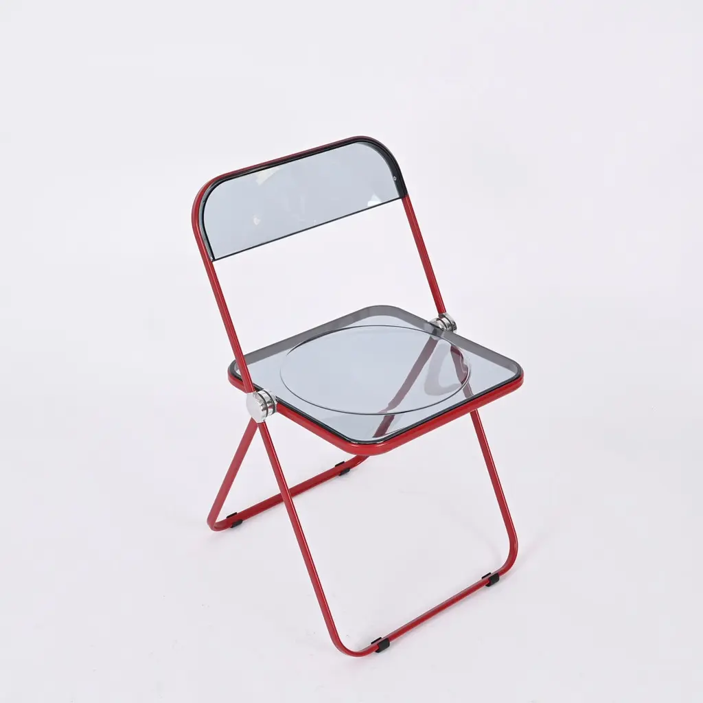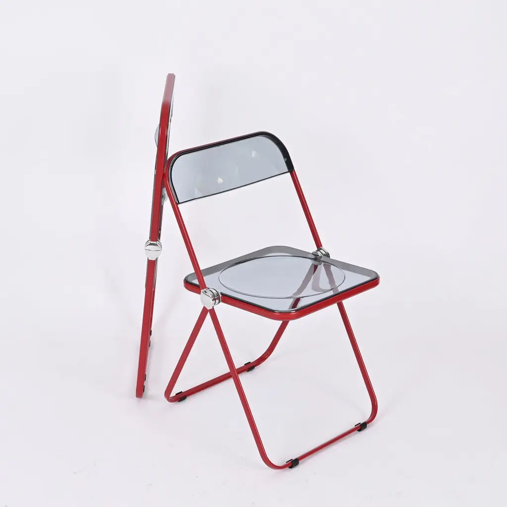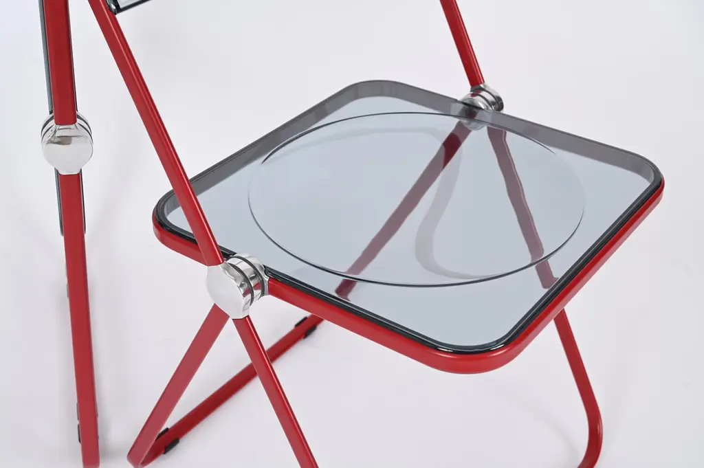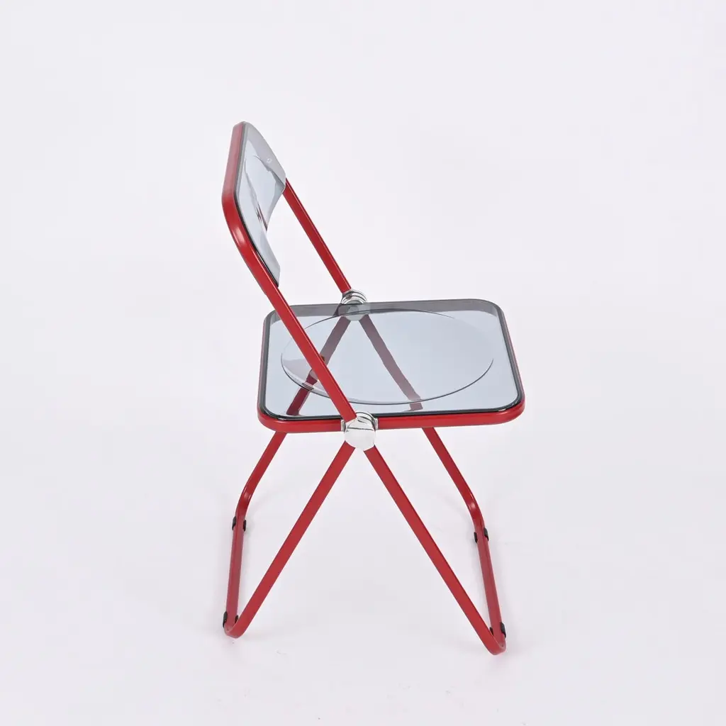 Set Of 6 Red And Smoked Lucite Plia Folding Chairs By Piretti For Castelli Italy