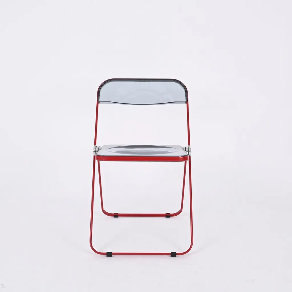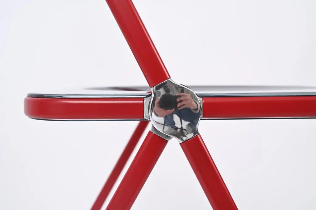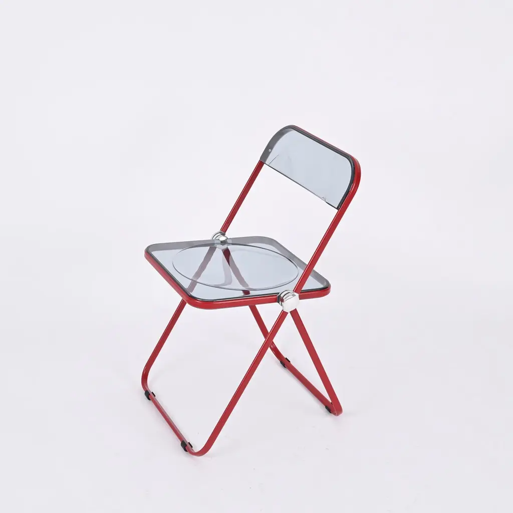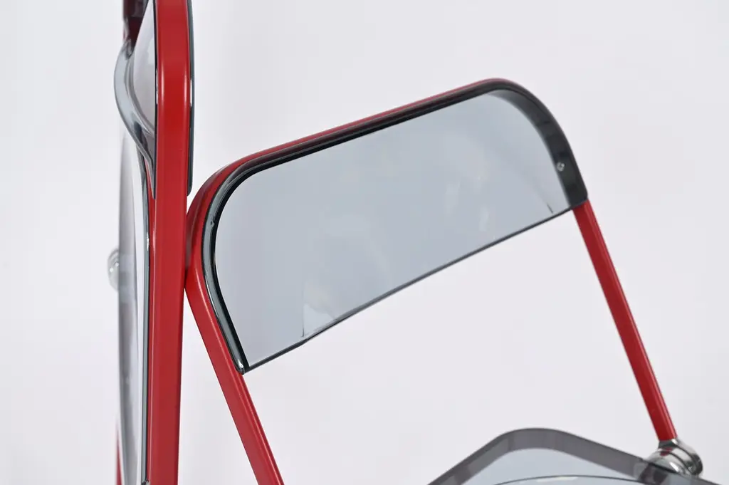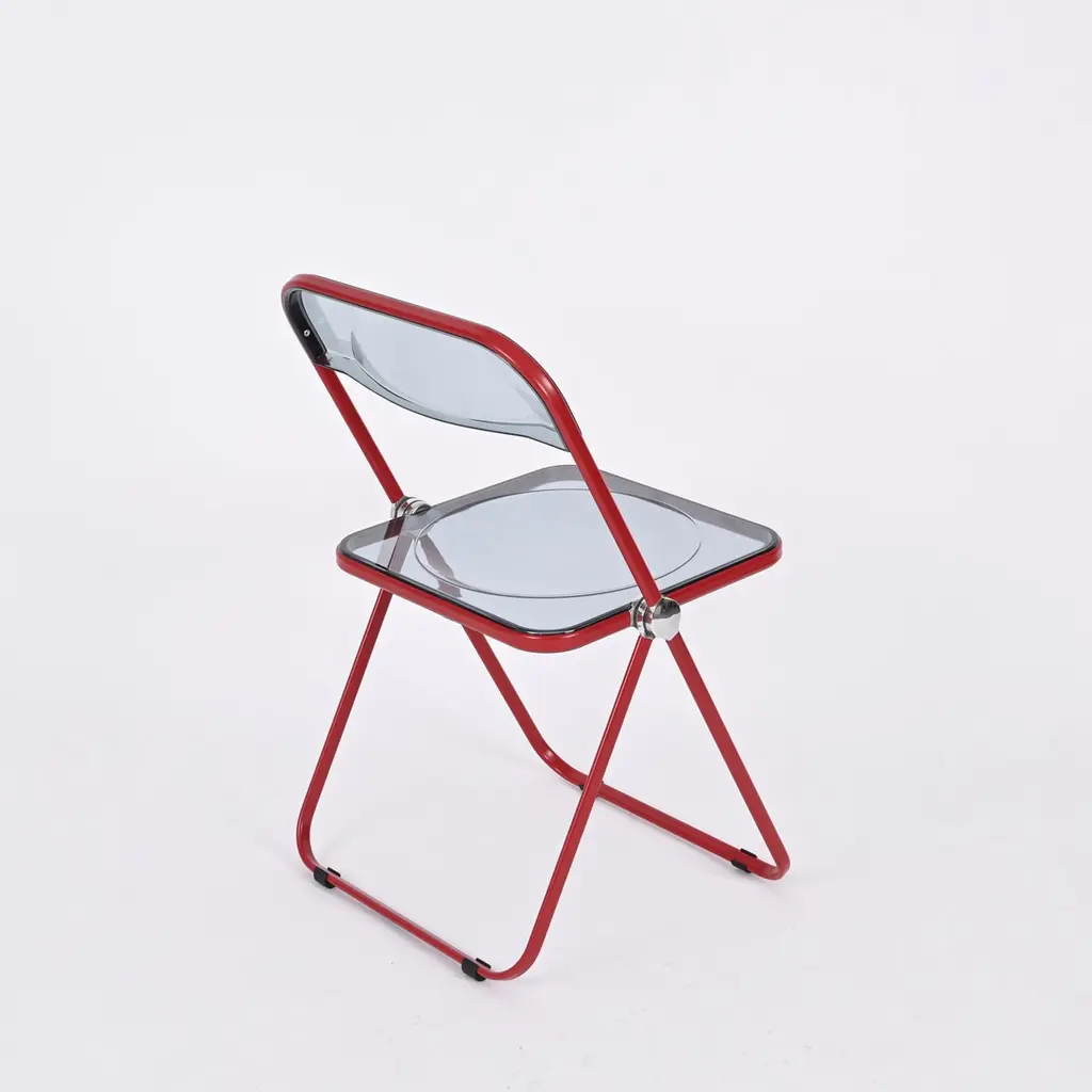 Set Of 6 Red And Smoked Lucite Plia Folding Chairs By Piretti For Castelli Italy