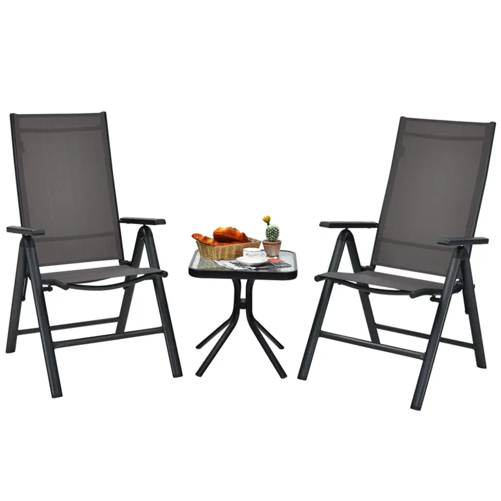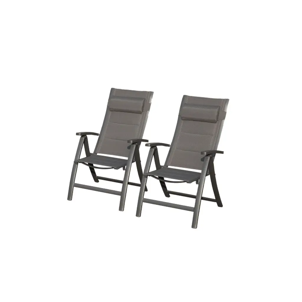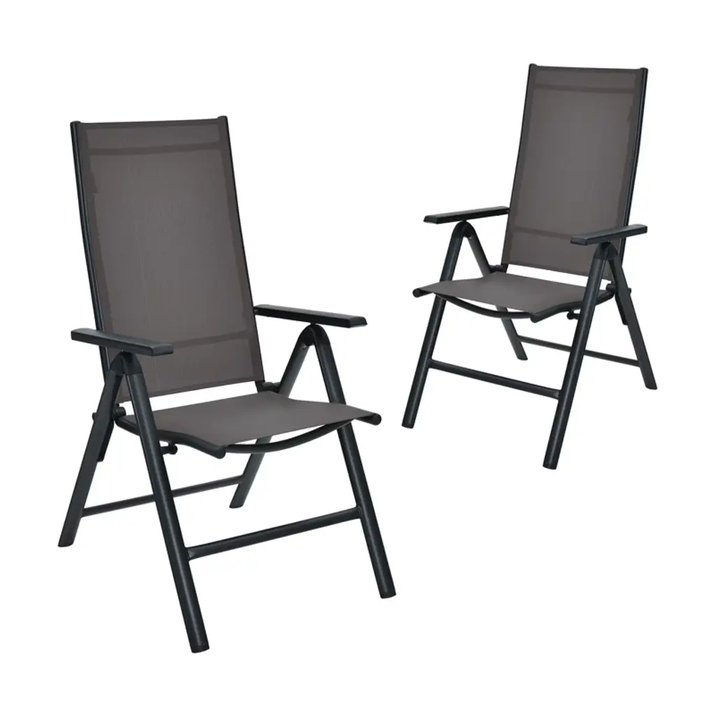 Our patio dining chair set is perfect for the backyard, patio or anywhere you want to relax, which is an ideal choice for you to enjoy leisure time with your family or friends. Crafted of sturdy aluminum frame and long-lasting fabric, this folding chair is perfect for outdoor use. Featuring with 7 adjustable positions Ergonomic backrests and armrests reduce back fatigue and relax your body for a comfortable seating experience. Folding design and compact size is designed for easy transportation and storage. In addition, the installation-free design helps to save your time and energy.FeaturesBreathable and fade-resistant fabric ensures long time useSturdy aluminum frame ensures stabilityErgonomic backrest can fit well the curve of your bodyNon-slip foot pads protect the floor and enhance the stability7-level adjustable backrest meets your different situationFolding design makes it convenient for transportation and storageSuitable for patio, garden, poolside, balcony and other outdoor placesSpecifications Material: Aluminium, Fabric, Plastic Color: Gray Patio Chair Size: 23"x 25.5"-42.5"x32"-43"(W x D x H) Folded Chair Size: 32"x 23"x 5"(W x D x H) Seat Size: 18" x 16.5" (W x D ) Seat Height: 18" Back Size: 18" x 27"(W x D) Armrest Height: 26" Weight Capacity of Each Chair: 330lbs Net Weight: 20lbs Package Include: 2 x Dining Chair