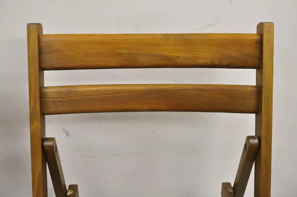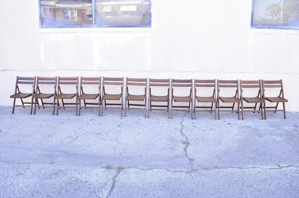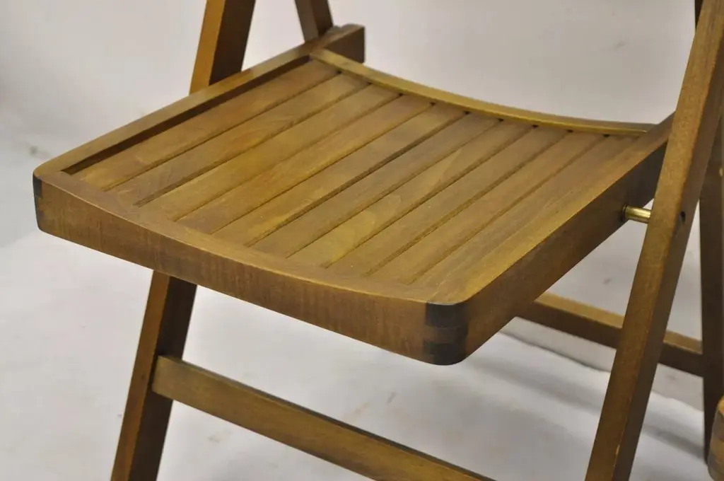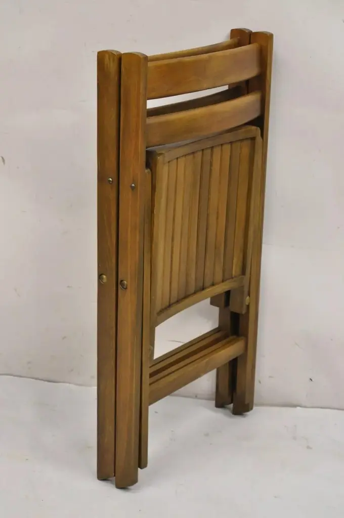 Vintage Mid Century Modern Solid Wood Slatted Folding Chairs - Set Of 6