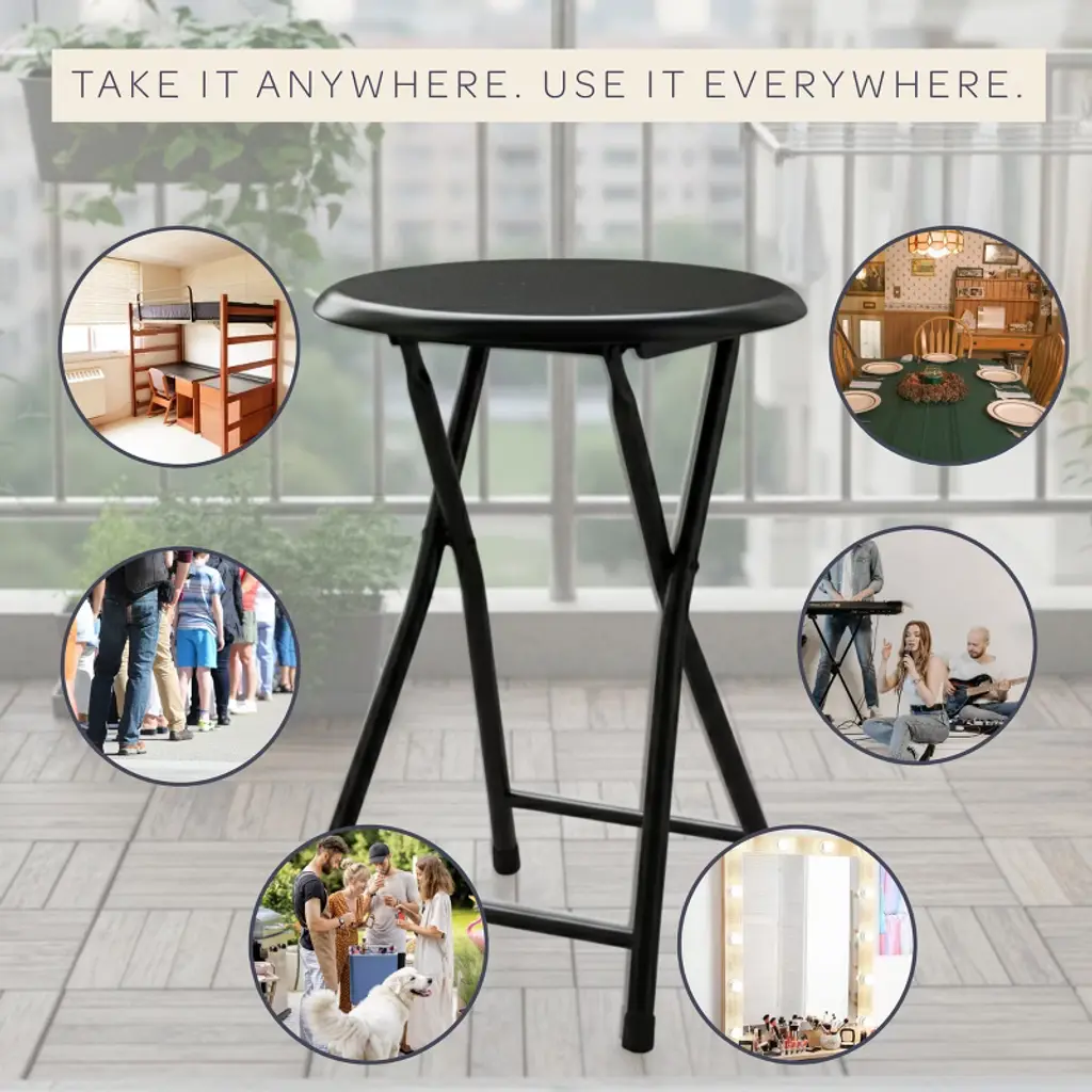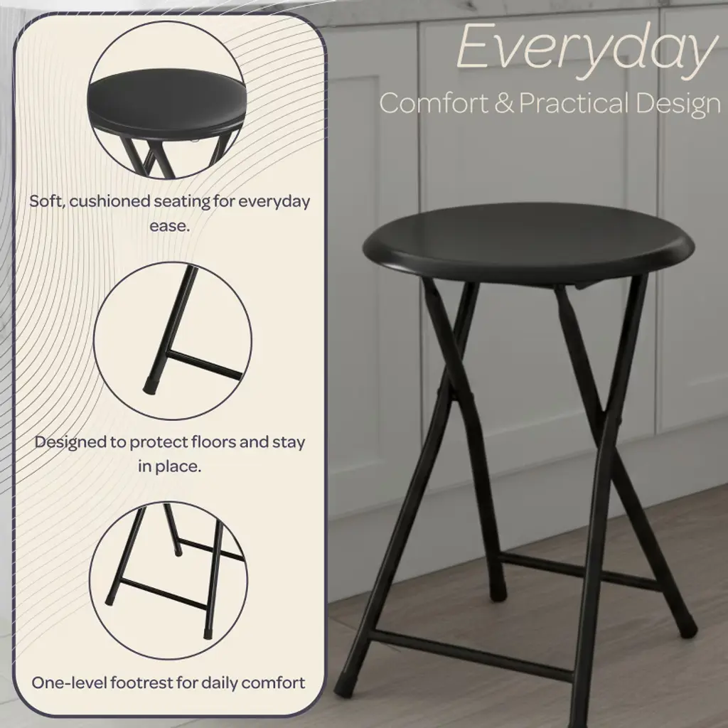 Lavish Home Set Of 4 Heavy-duty 24-inch Folding Stools With Padded Seats, Black