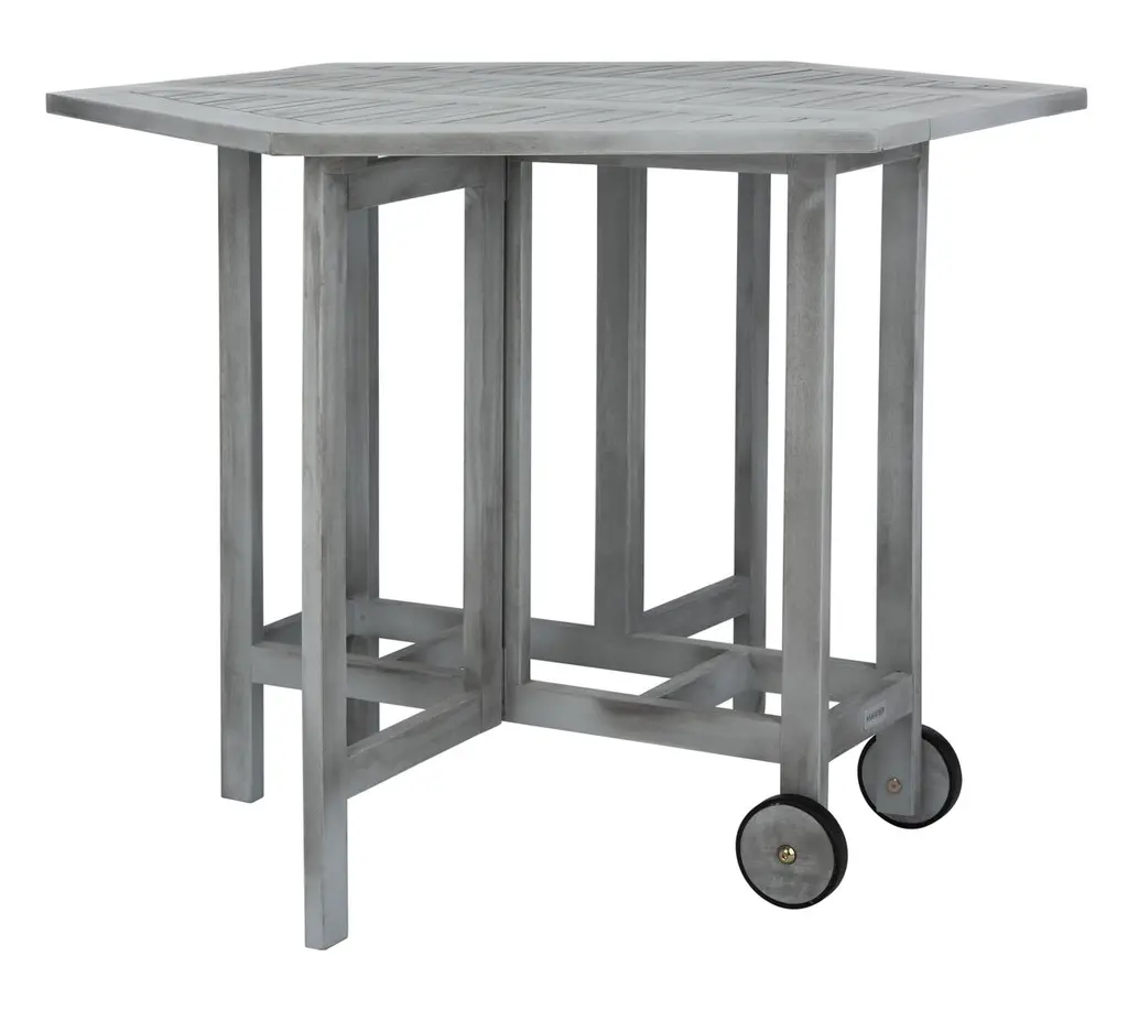 Stack the odds for carefree outdoor living in your favor with the ingenious Hesper dining table and chair set. Crafted of eco-friendly acacia wood, 4 director-style chairs fold and tuck under a foldable hexagonal table for easy storage.