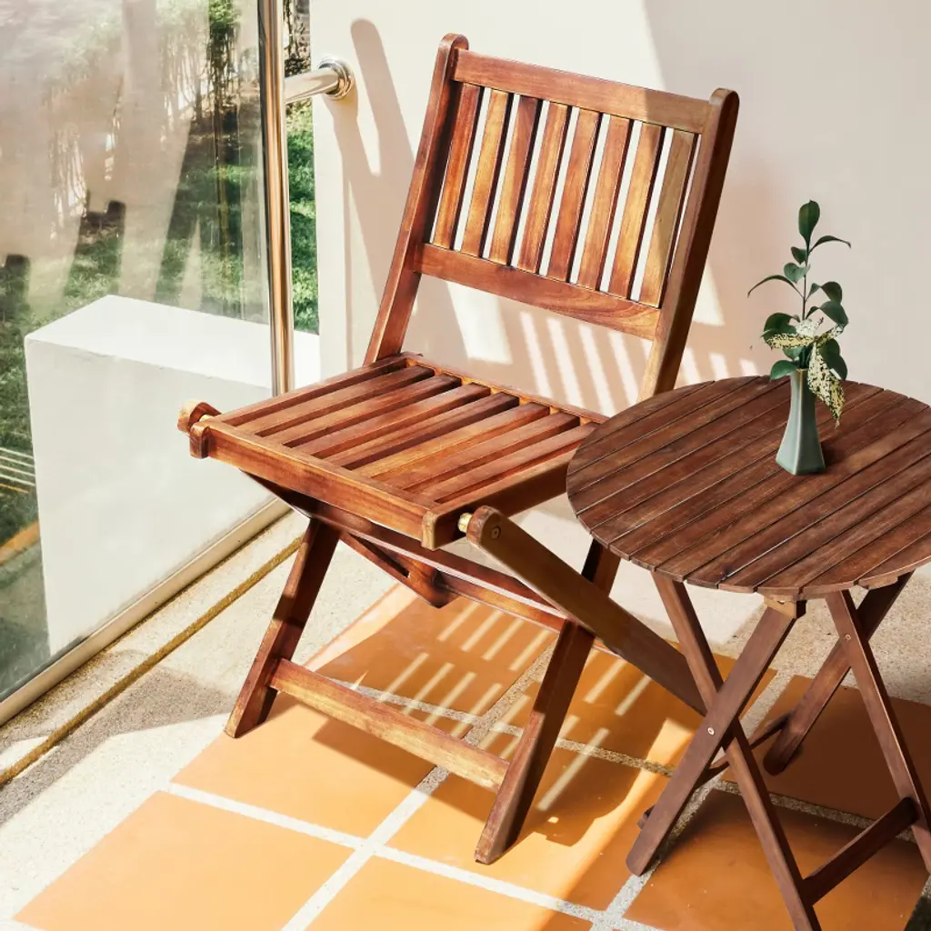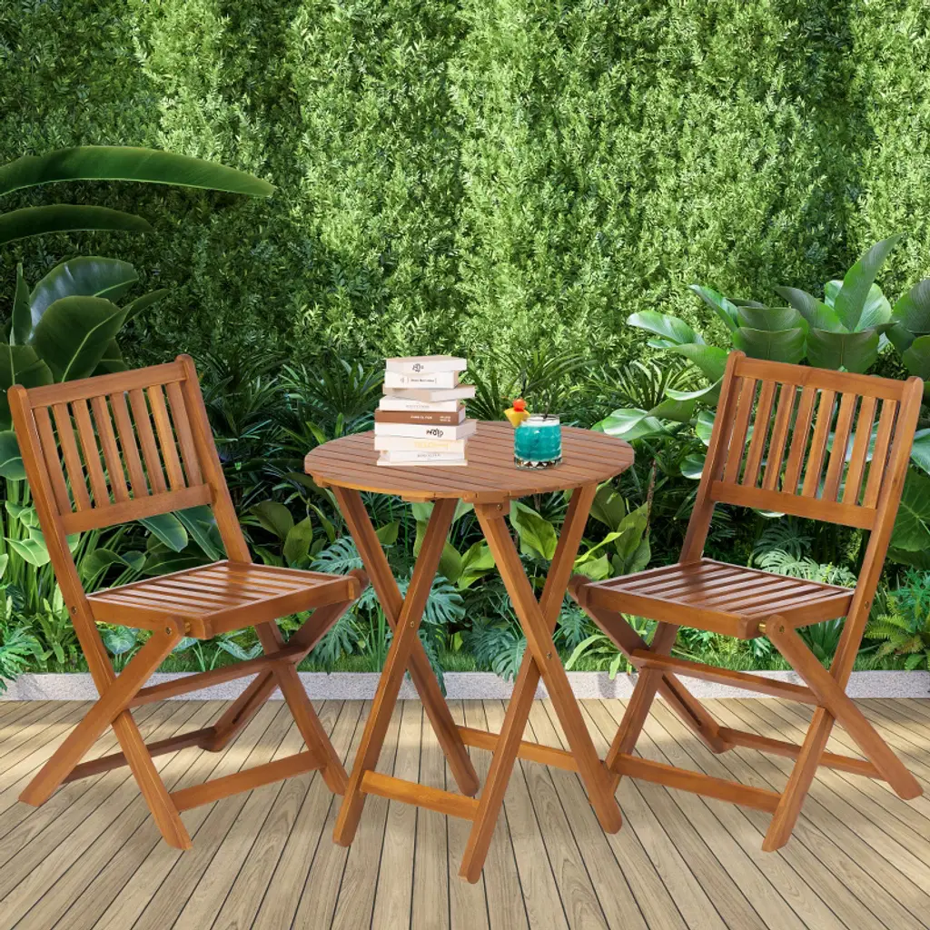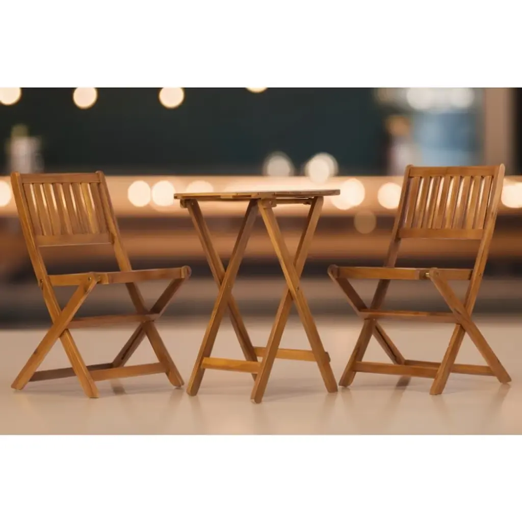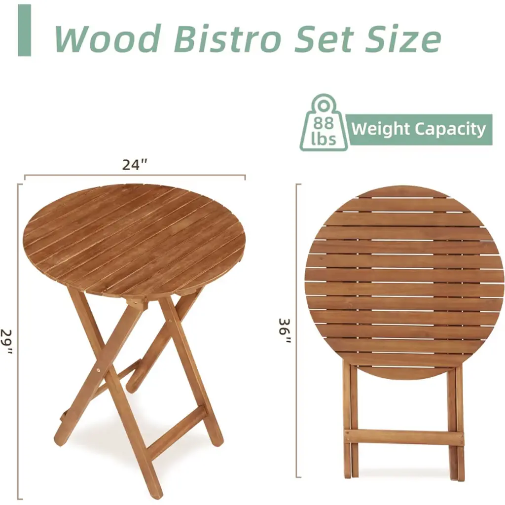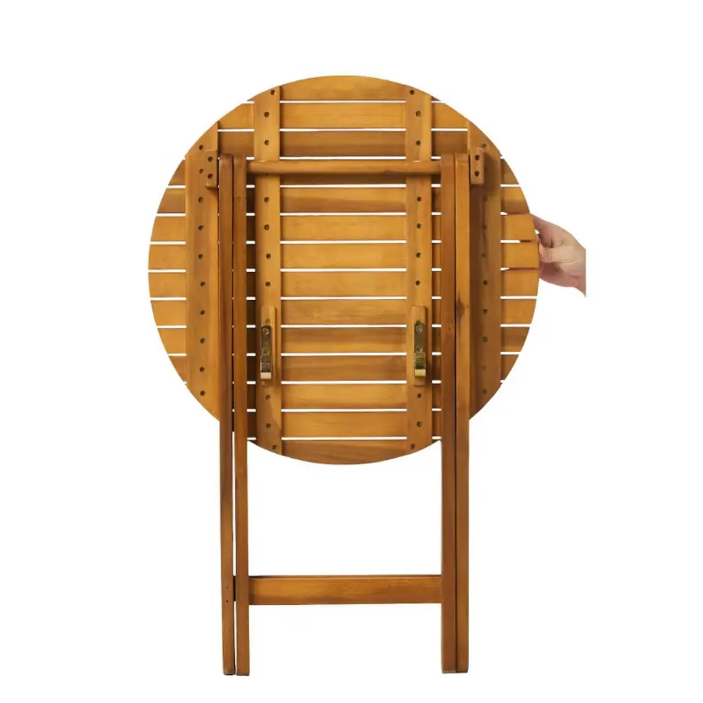 Vasip 3-piece Acacia Wood Bistro Set, Folding Patio Furniture For Garden Backyard Balcony Porch W/ 1 Coffee Table And 2 Foldable Chairs,light Brown