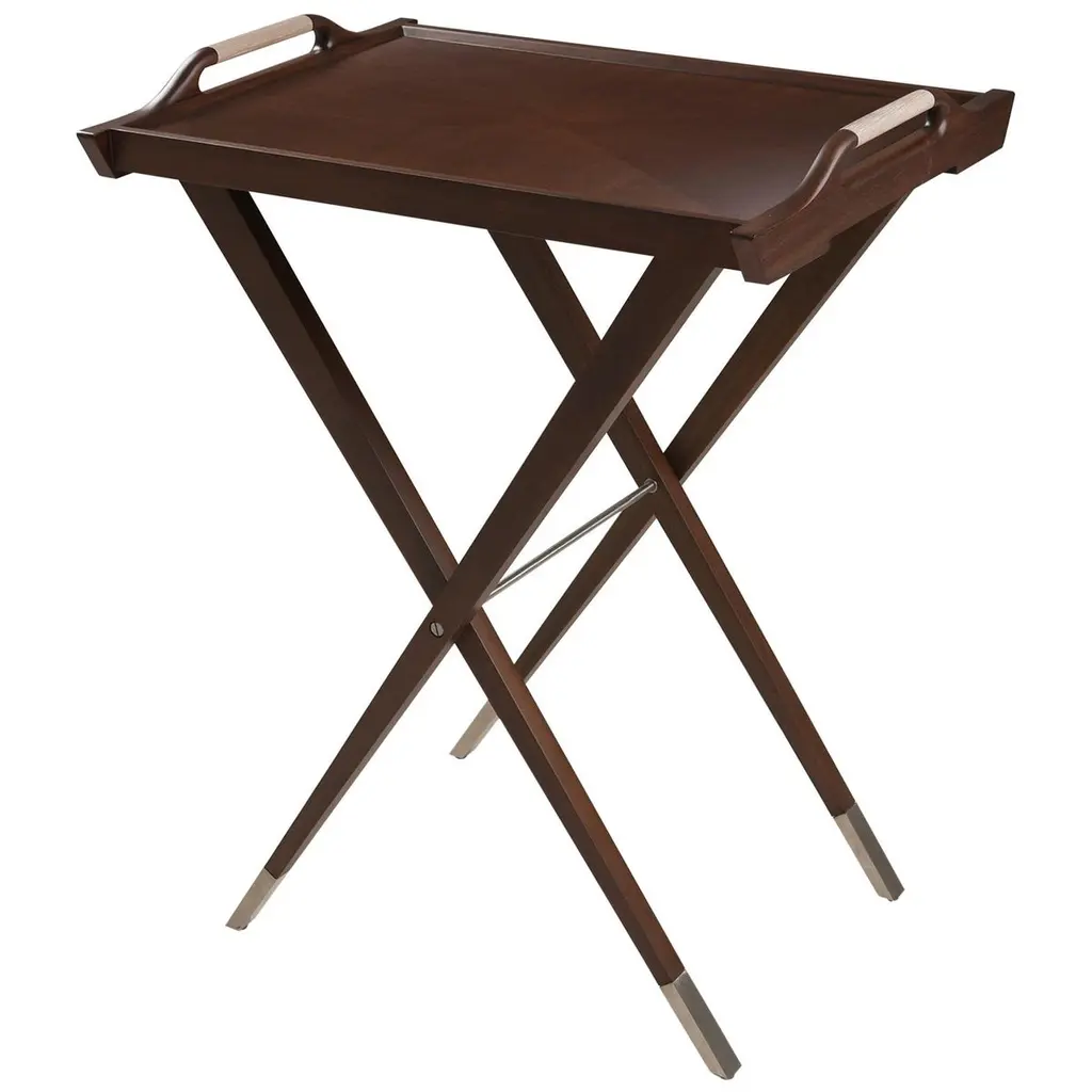 21st Century Leather & Walnut Wood Dedalo Folding Table Handcrafed In Italy