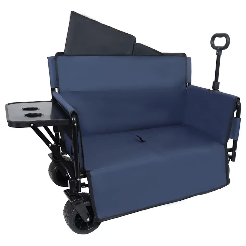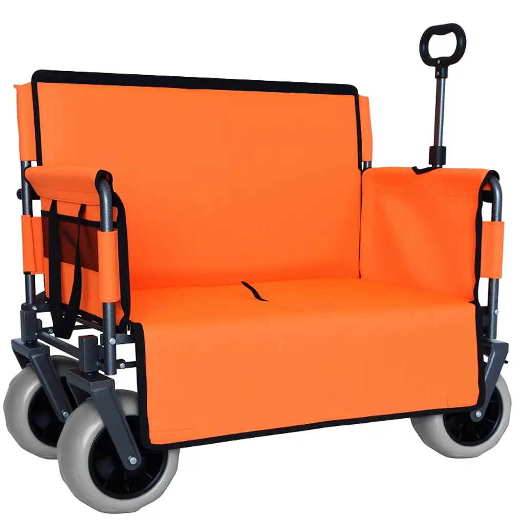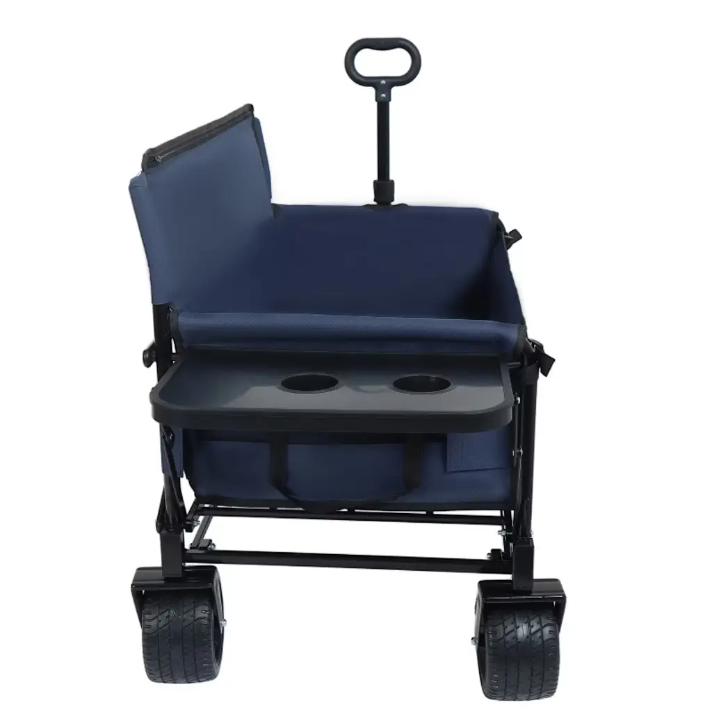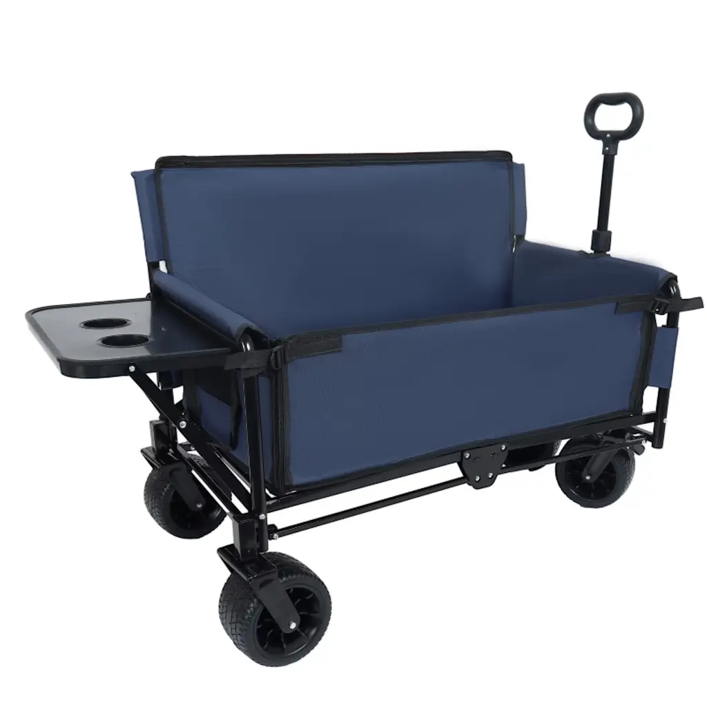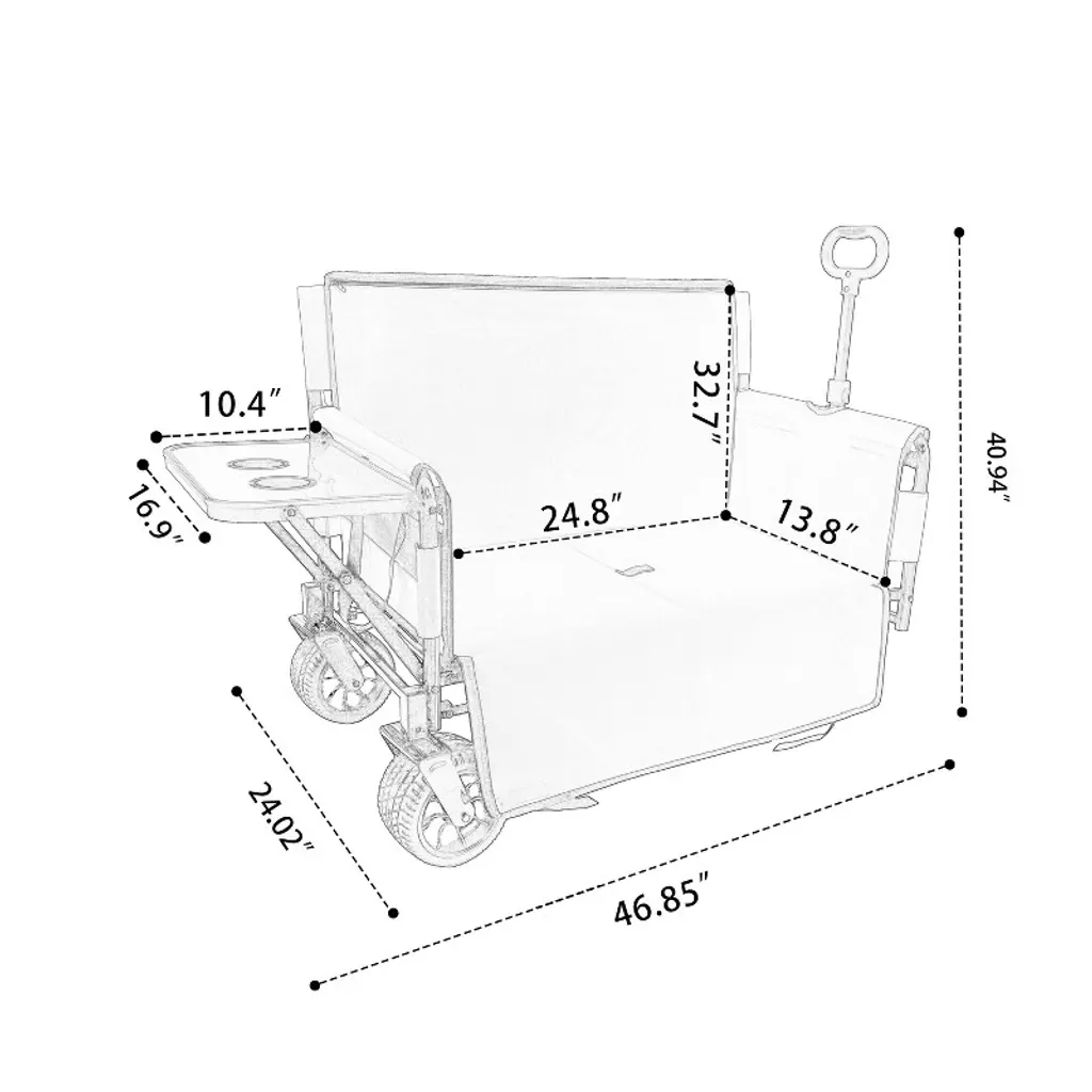 3-in-1 Convertible Folding Wagon Cart W/bench Seat & Rear-mounted Folding Tabletop, 500lbs Heavy-duty Utility Wagon, 180l Capacity All-terrain Wheels
