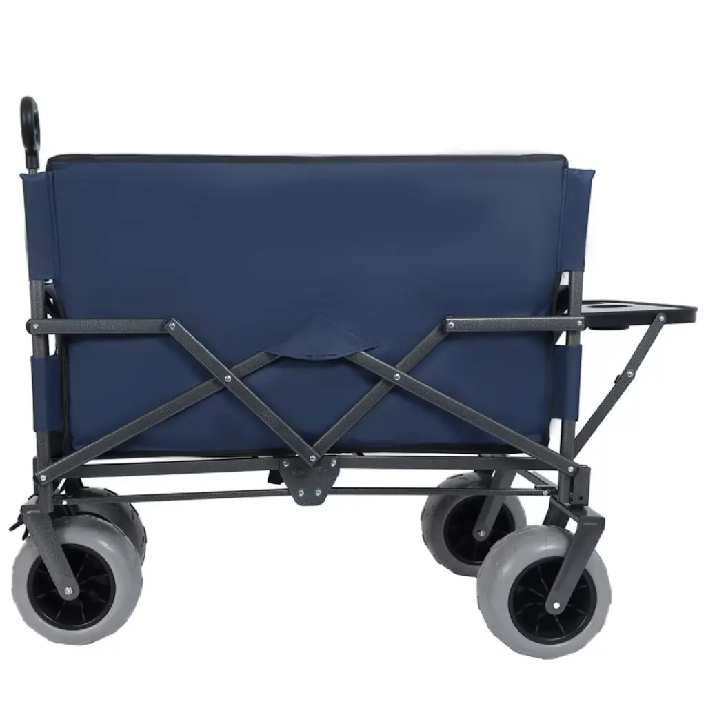3-in-1 Folding Wagon With Bench Seat & Rear-mounted Folding Tabletop ̈C 500lbs Capacity, 9"x4" Beach Tires Dark Blue