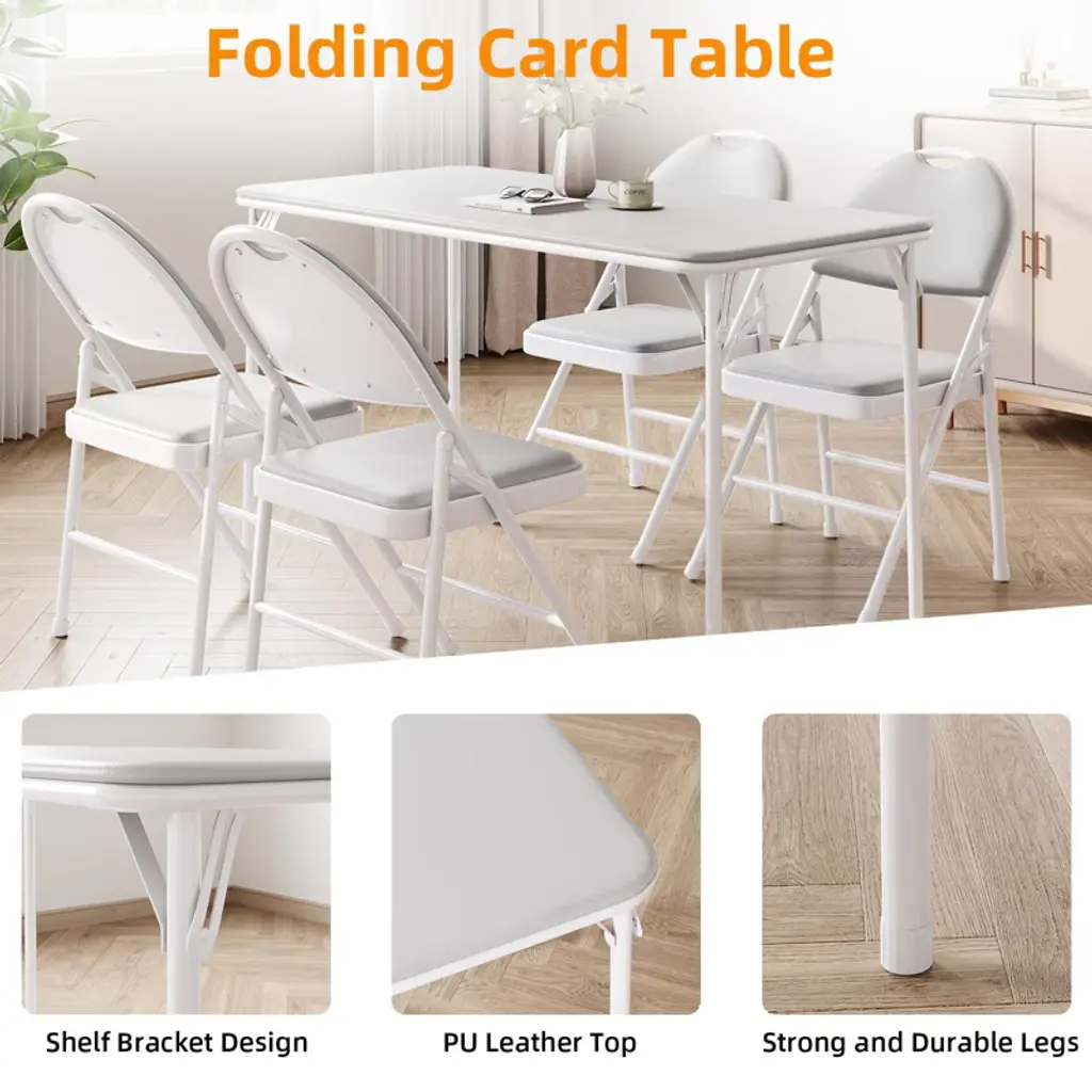 4 Feet Folding Table, Protable Foldable Card Table, Metal Legs Support, Upholstered PU Leather Tabletop, Heavy Duty, No Assembly Required, Perfet for Indoor and Outdoor