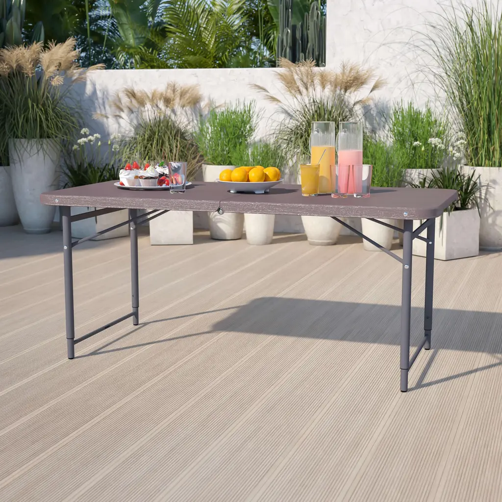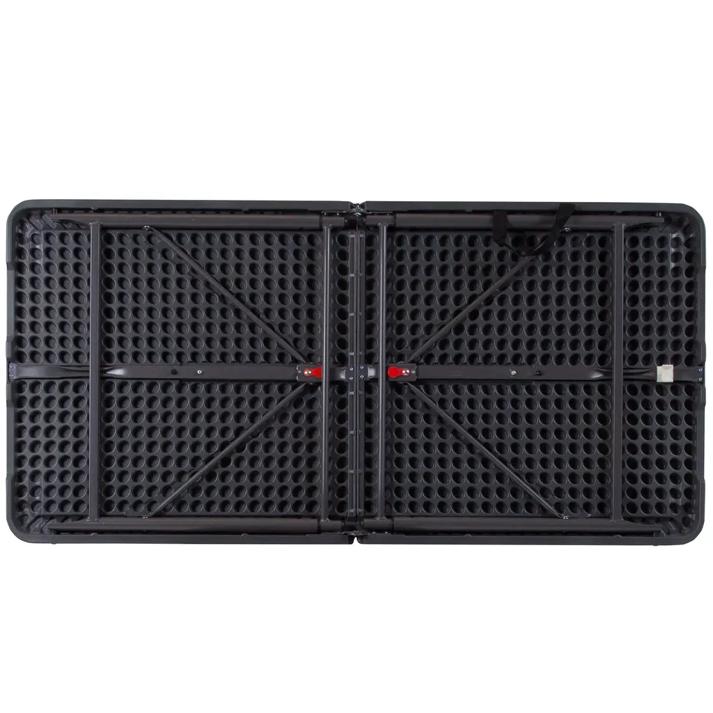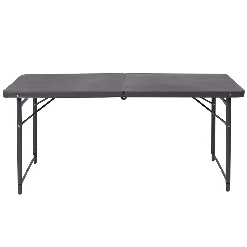 4-Foot Height Adjustable Bi-Fold Dark Gray Plastic Folding Table With Carrying Handle