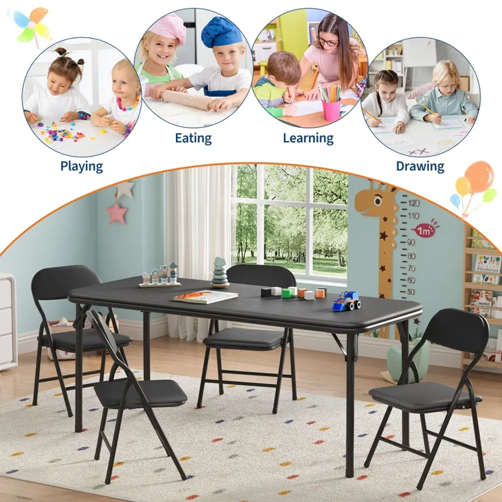 5-piece Kids Folding Table And Chairs Set, Foldable, Children's Activity Table And Chairs Set, For Dining Room, Living Room, Black