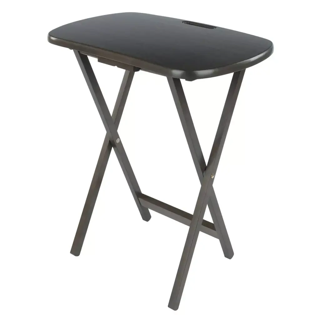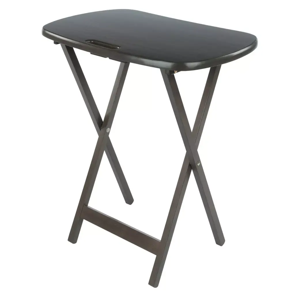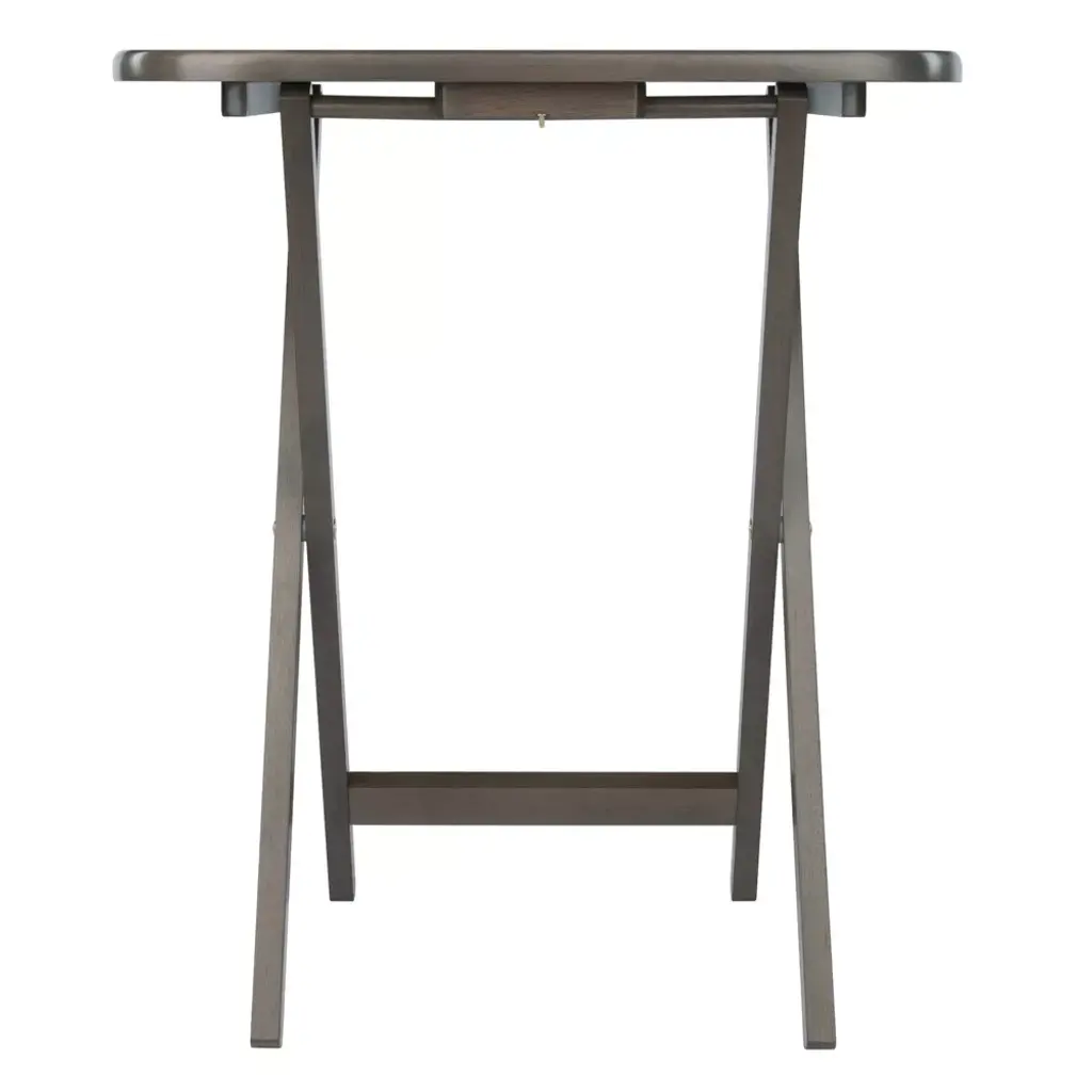 Make entertaining simple and easy with the Winsome Wood Lucca 5-Piece TV Table Set. A perfect companion piece for a casual meal in front of the TV or on the patio. Four folding snack tables great for daily use and compact enough to store in the closet. An upright stand is an innovative addition to this set as it serves as a rack to store the folded tables discretely when not in use. These beautifully finished trays are convenient and make meal serving simple when you need it. The wide 22.8” oblong portable folding TV table set provides users easy handling so they can lift the trays off the stand using the cutout handles in the table. You can move them closer to a sofa, chair or even into a different room. Winsome TV tables are ideal for small apartments, dorms and offices. They can also be used to prop up a laptop, play cards or other board games, apply nail polish or sort coupons. These light weight tables are portable and practical, fold up and place back on the stand for compact storage. Notches on the stand keep the folded tables securely in place. With its many uses and advantages, the Lucca 5-Piece TV Table Set is a piece of furniture you'll appreciate and be glad you own. Constructed of solid and composite wood in a contemporary oyster gray finish. Conveniently packed and shipped in 1 box, that includes the hardware necessary for assembling the stand. Tables arrive ready to use. Replacement part request can be submitted directly to the manufacturer within 60 days from date of purchase.Size of stand with trays loaded: 22.8""W x 11.9""D x 31.3""HSize of open snack tray: 22.8""W x 15.6""D x 25.7""H Folded tray: 22.8""W x 1.7""D x 29.4""H Stand only: 12.2""W x 11.9""D x 31.3""H Static weight capacity 25 lbs. per trayStand requires assembly Snack Trays are fully assembledShips in 1 box