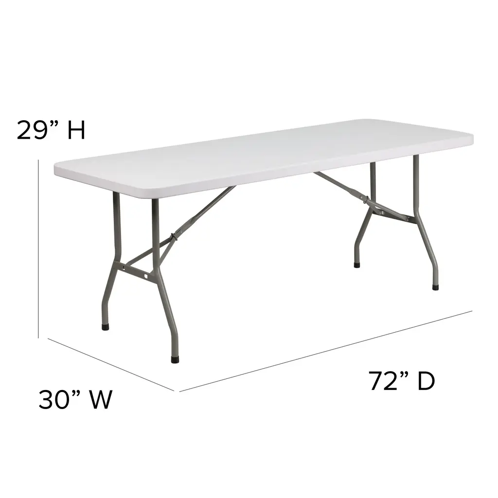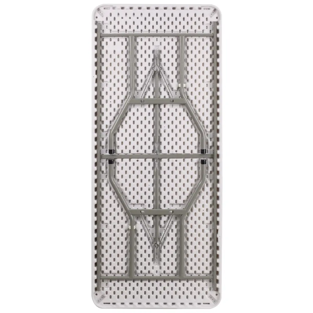 Ensure you have enough surface space for any function and take the stress out of hosting your next gathering. This rectangular folding table is 6 feet long and is beneficial in a multitude of settings that include banquet halls, conference centers, cafeterias, schools and in the home. Use as a temporary seating solution or setup for everyday use. This plastic folding table comfortably seats up to eight adults while ensuring plenty of legroom. Speed up the time it takes to set-up and tear-down wedding receptions, graduation parties, banquets, buffets and other events with this folding table. Whether you're hosting an indoor or outdoor gathering, the smooth design is easy to wipe clean. When using for outdoor events store indoors to protect the frame from extreme moisture. The table legs fold under for storage and provide better portability. This table is commercial grade to withstand everyday use in the hospitality industry.