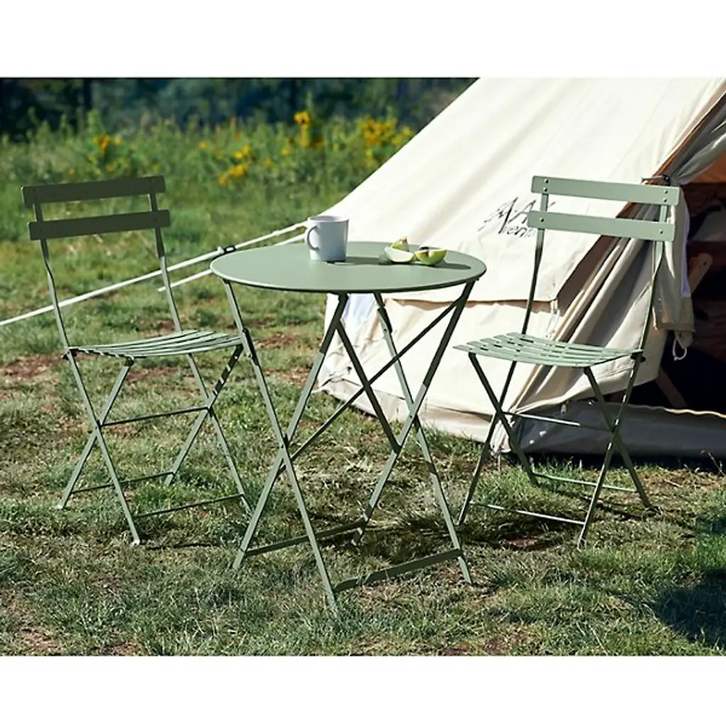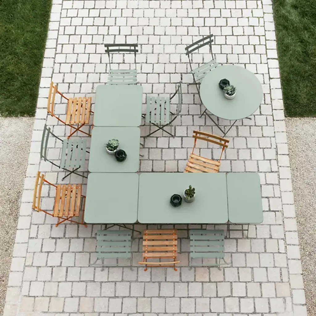 From Paris cafes to your backyard. Inspired by the folding cafe tables populating sidewalks all around the City of Lights, the Bistro Round Folding Table by Fermob brings that level of convenience, color and style to any modern dining setting. The classic round top is made out of a single piece of machined Steel sheet. It sits securely on the strong Lacquered Steel base, a scaffolding-like structure that holds strong when opened and easily folds flat for compact storage when the table is not in use. Complete the colorful or understated look you desire with your choice of durable powder coat finish.
