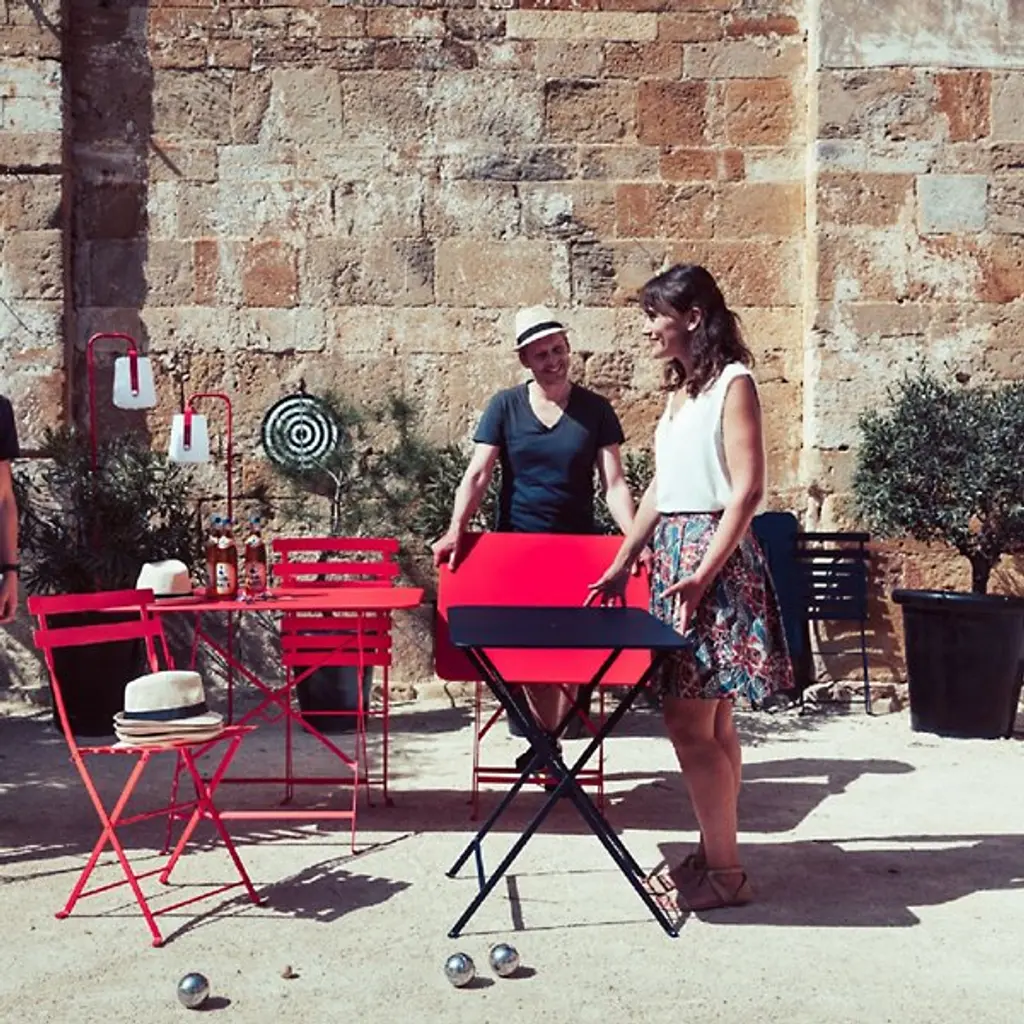 The Bistro Square Folding Table by Fermob is suitable for an intimate experience. Perfect for seating two people or add a few to create and customize a larger table. Foldable and made of a lacquered steel base and a steel sheet table top that will protect from weather damages. Available in vibrant or more subtle colors to suite your outdoor design.