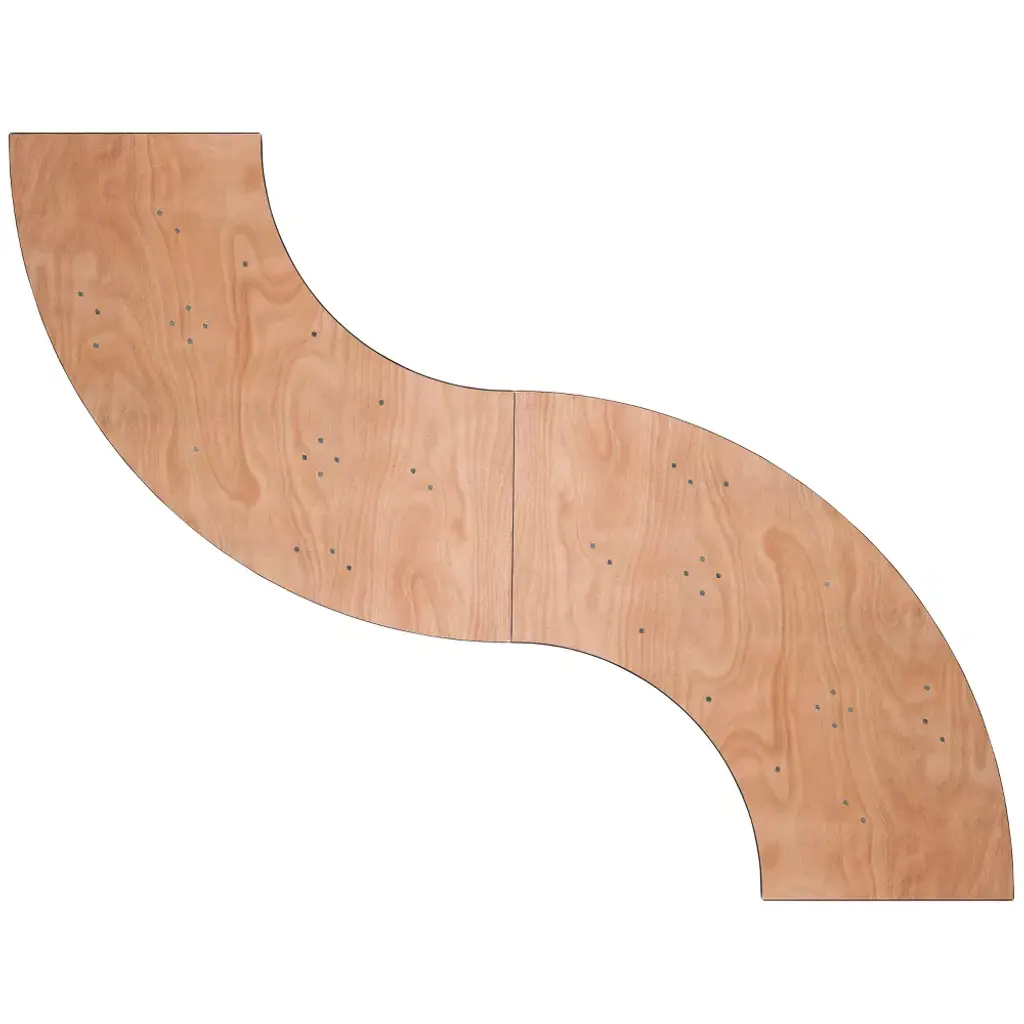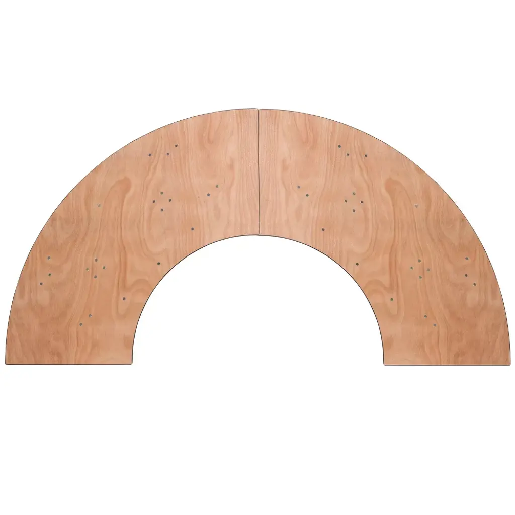 This semi-circular wood folding table allows you to create a serpentine, half circle or full circle table. The serpentine table allows you to create beautiful arrangements for weddings, banquets and other events. Create a serpentine table by placing two tables in alternate directions. Create a half circle or full circle by placing two or four tables together from end-to-end. The table legs fold under the table to make storage more convenient and for better portability. This table is commercial grade to withstand everyday use in the hospitality industry. Additional Features: Black T-Mold Edge Band, Black Powder Coated Wishbone Legs, 18 Gauge Steel Legs, Protective Floor Caps, Designed for Commercial Use
