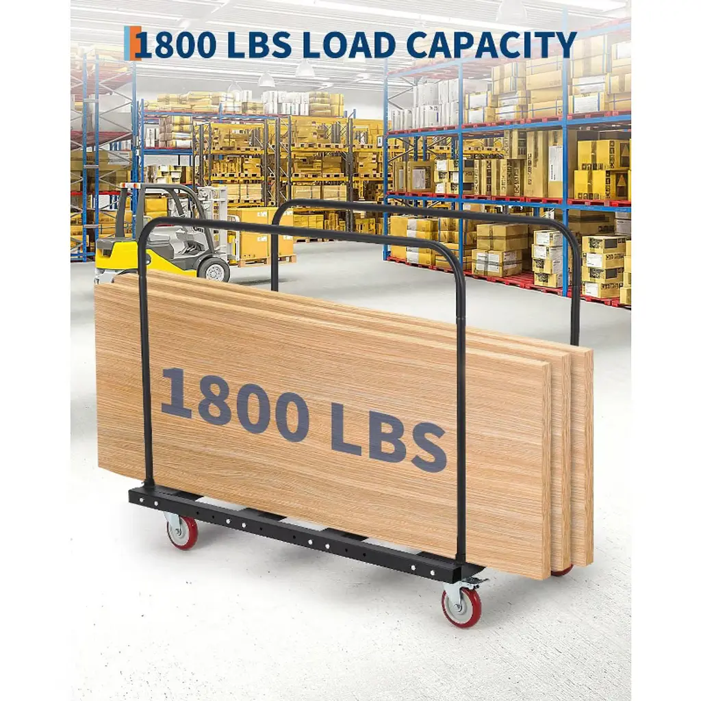 Move heavy loads with ease using this heavy duty folding table cart dolly. Built from strong steel with an 1800 lb capacity, it securely transports up to 10 tables or panels at once, saving time during busy setups. Four 360¡ã swivel wheels with locking brakes provide smooth rolling and precise control, even in crowded event spaces. The adjustable support rods keep every load stable, minimizing shifting and damage, making this cart ideal for hotels, warehouses, and large events.