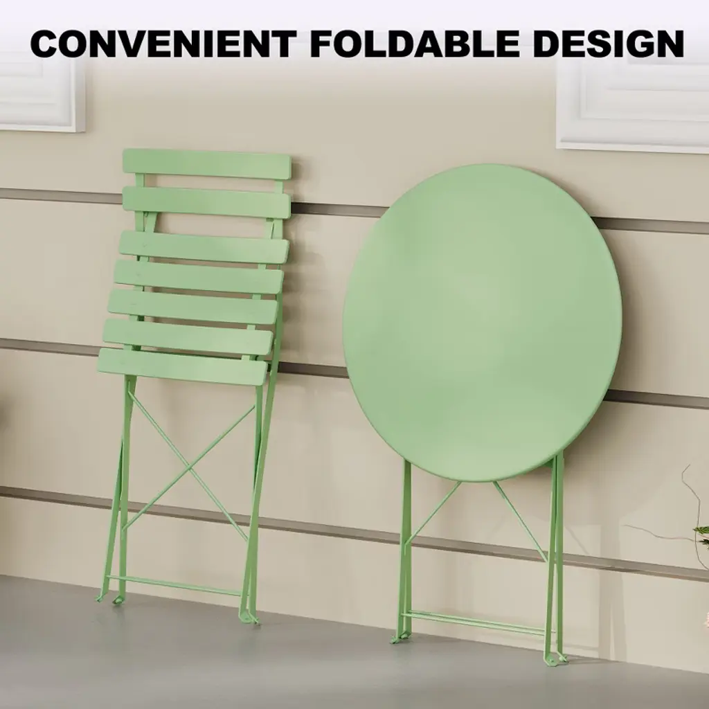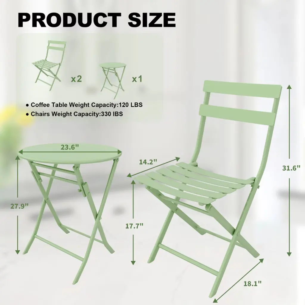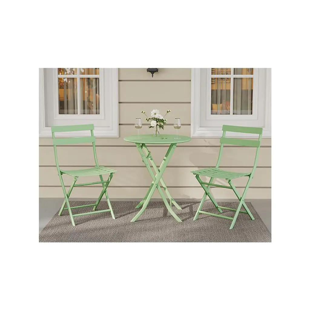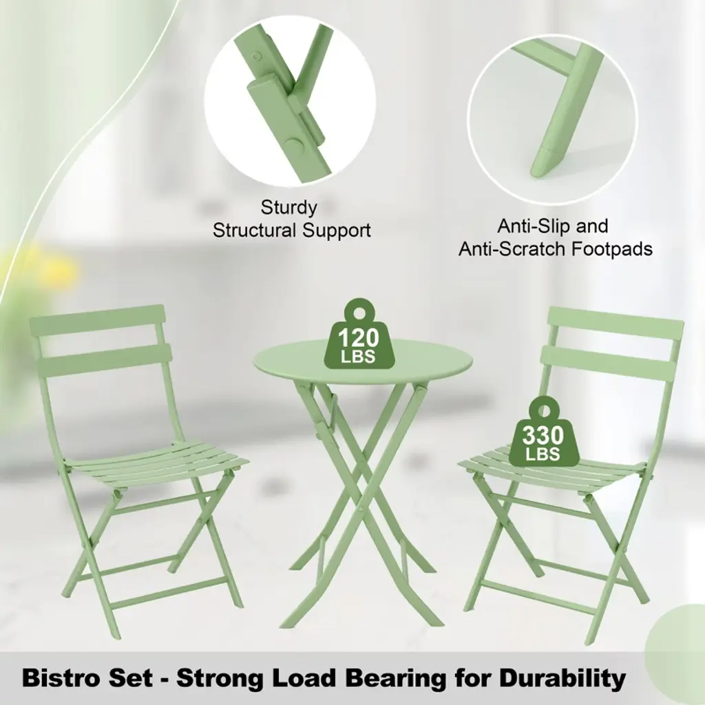 Garvee 3-piece Outdoor Bistro Set - Folding Table And 2 Chairs, Metal Patio Furniture For Porch, Garden, Balcony, Poolside, Green