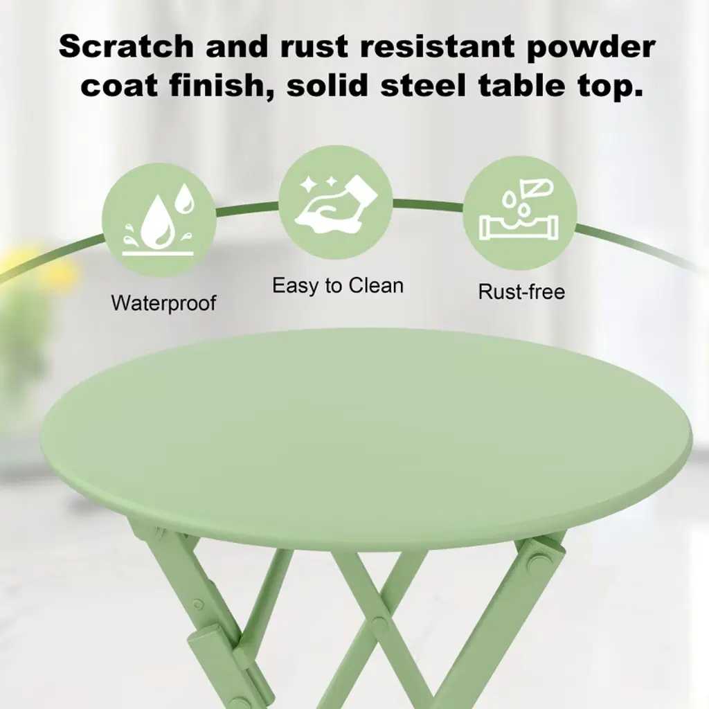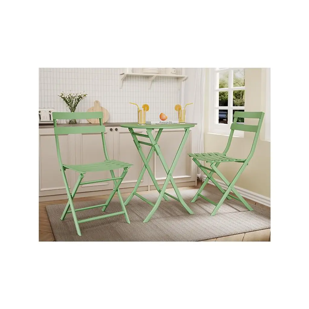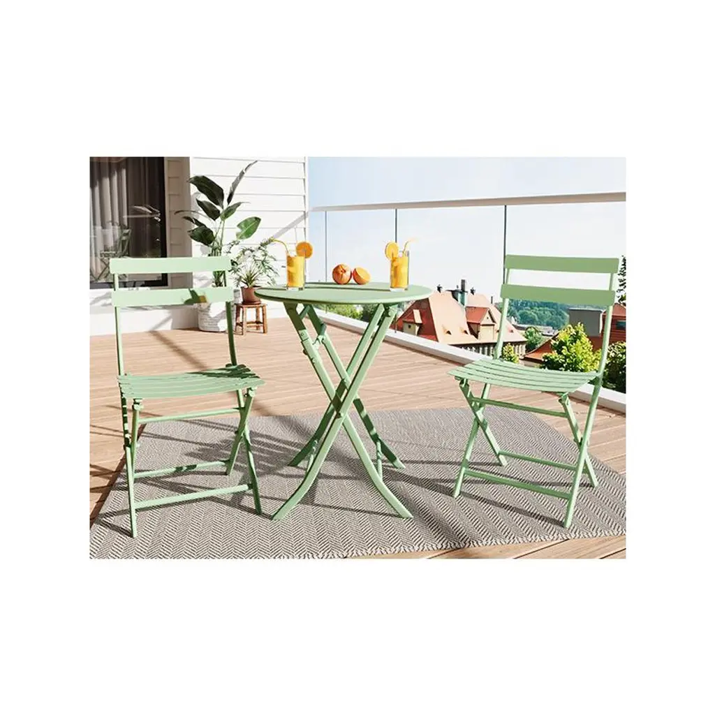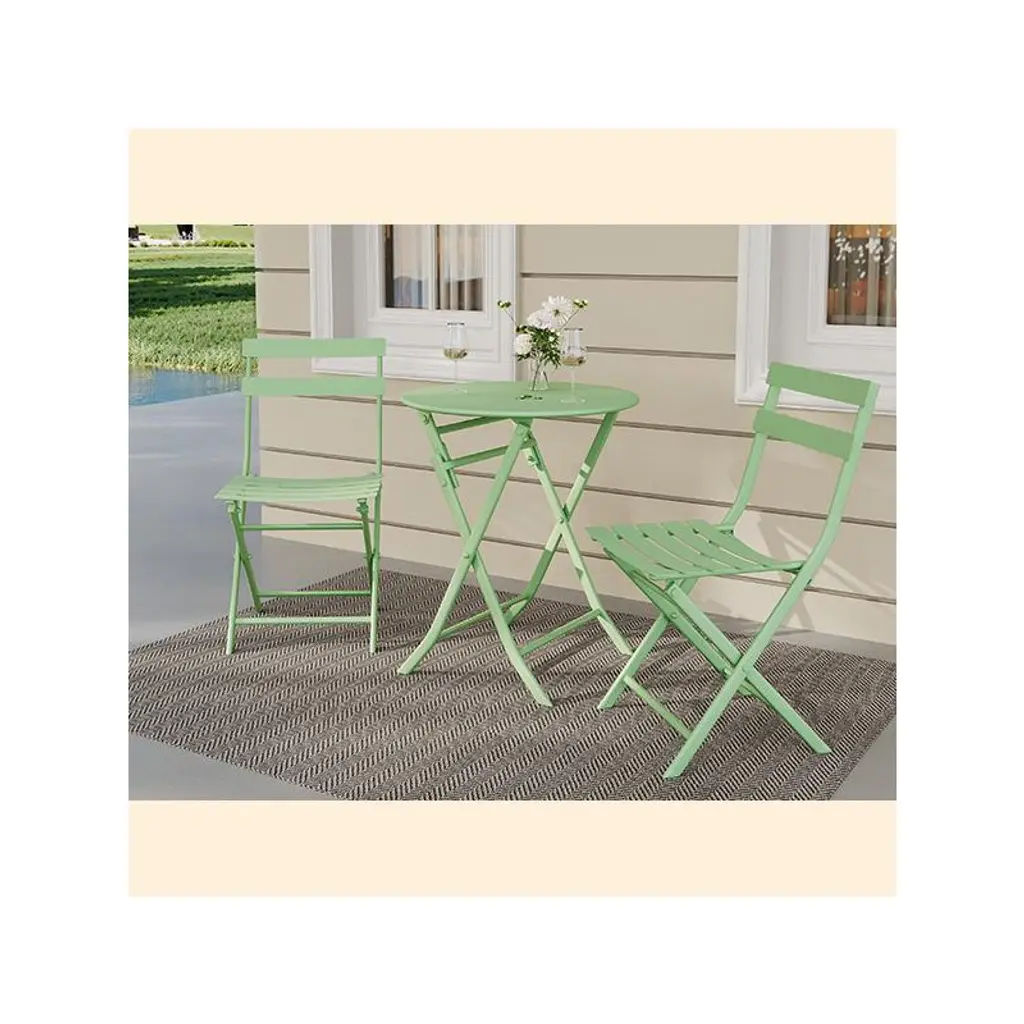 Garvee 3-piece Outdoor Bistro Set - Folding Table And 2 Chairs, Metal Patio Furniture For Porch, Garden, Balcony, Poolside, Green
