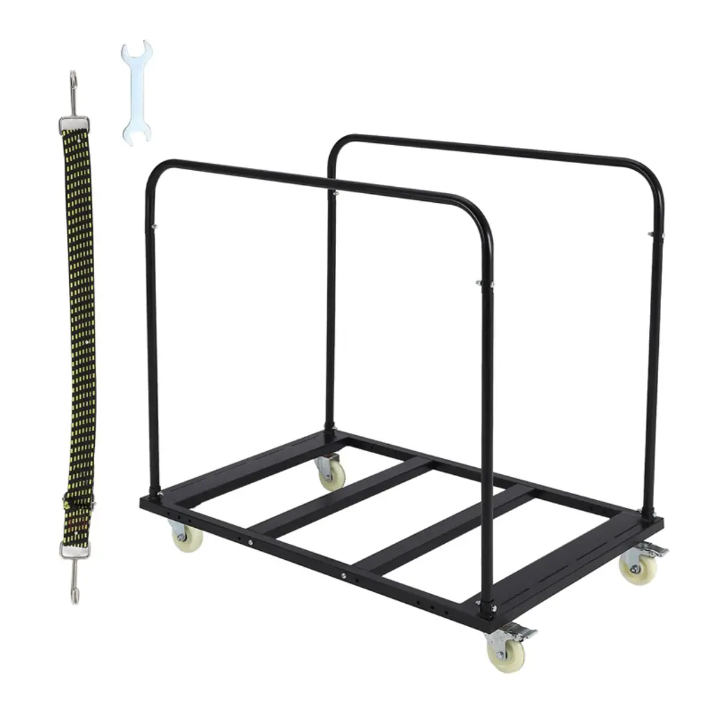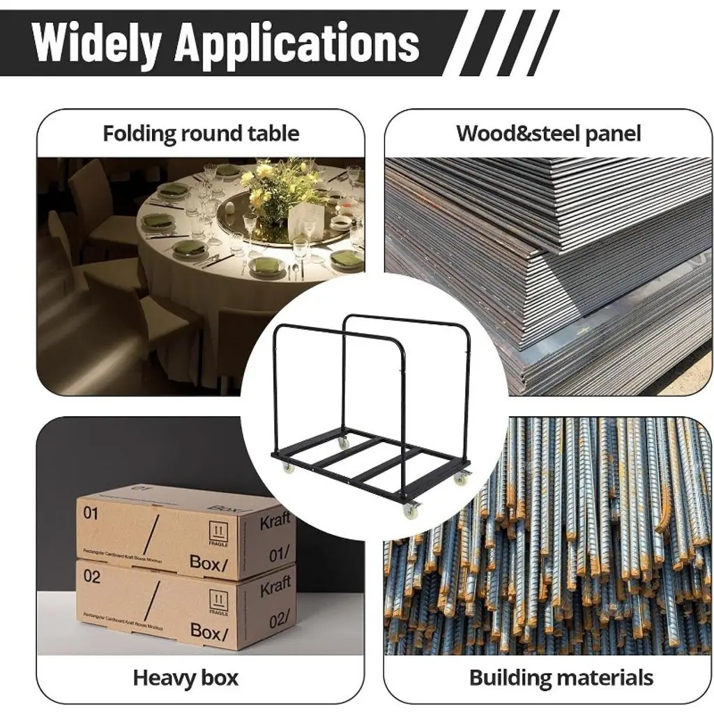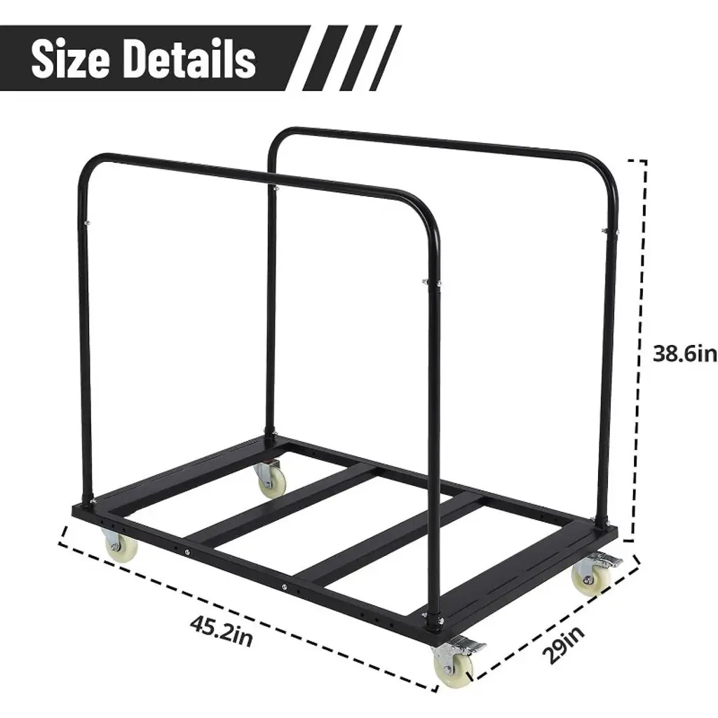 Introducing the Heavy Duty Folding Table Cart, designed for those who value efficiency and strength in transporting tables and other heavy items. With an impressive load capacity of 1800 lbs, this cart is capable of carrying up to 10 tables at a time, making it an essential tool for event planners, caterers, and anyone in need of moving heavy items quickly. Its innovative two-handrail design enhances stability and grip, allowing secure transport of sloped materials. Equipped with four 5-inch swivel casters, this cart ensures smooth mobility and easy navigation, even in tight spaces. Two of these casters feature brakes for secure parking, giving you confidence when setting up and moving around crowded areas. Crafted from durable alloy steel with a powder-coated finish, this cart is built to last, resisting wear and tear while maintaining its sleek appearance. Whether you’re organizing a wedding, a conference, or managing a busy warehouse, this versatile vehicle adapts to your needs. Perfect for various environments, it streamlines logistics, ensuring you can focus on what matters most. Experience the convenience and reliability of our Heavy Duty Folding Table Cart today!