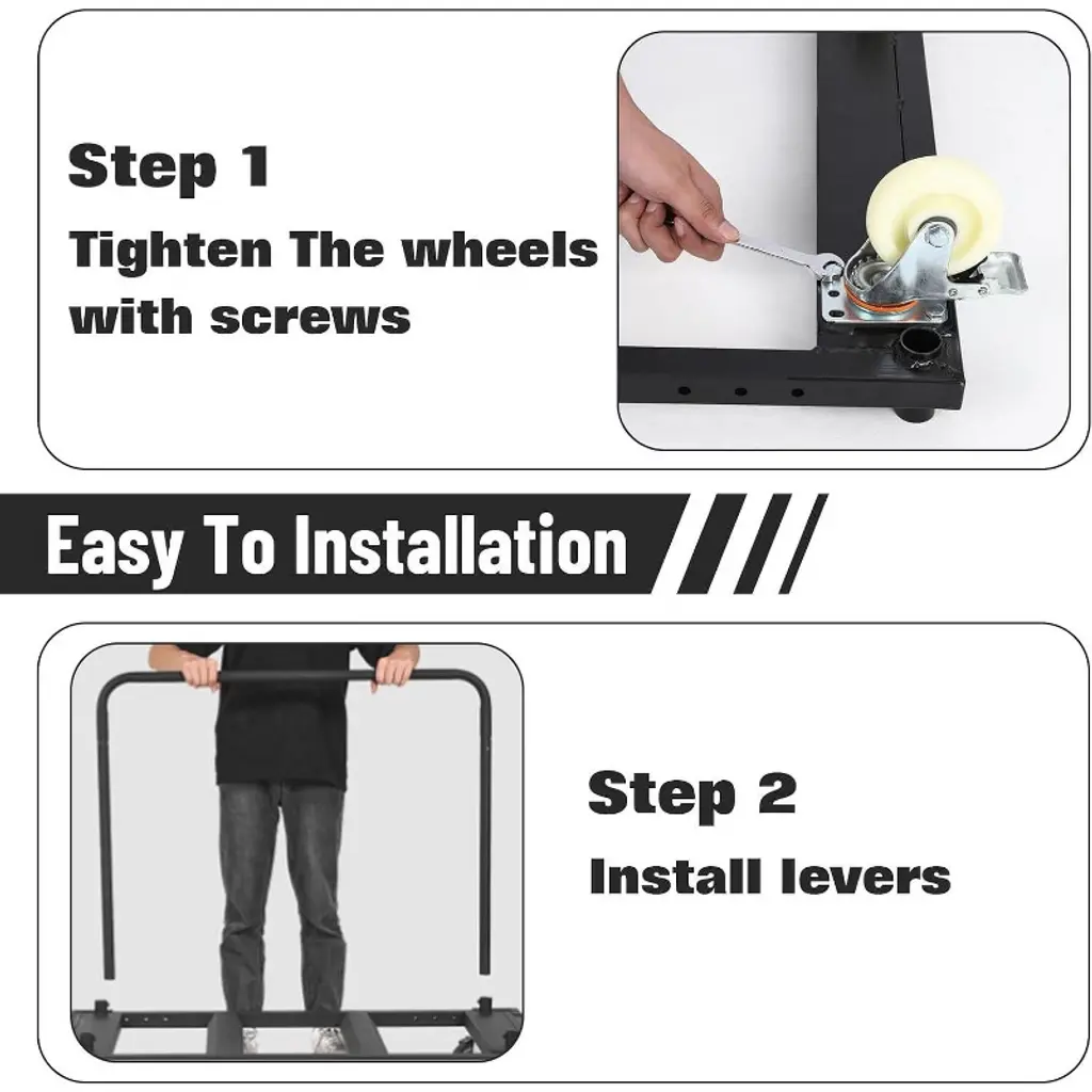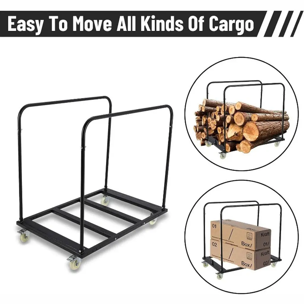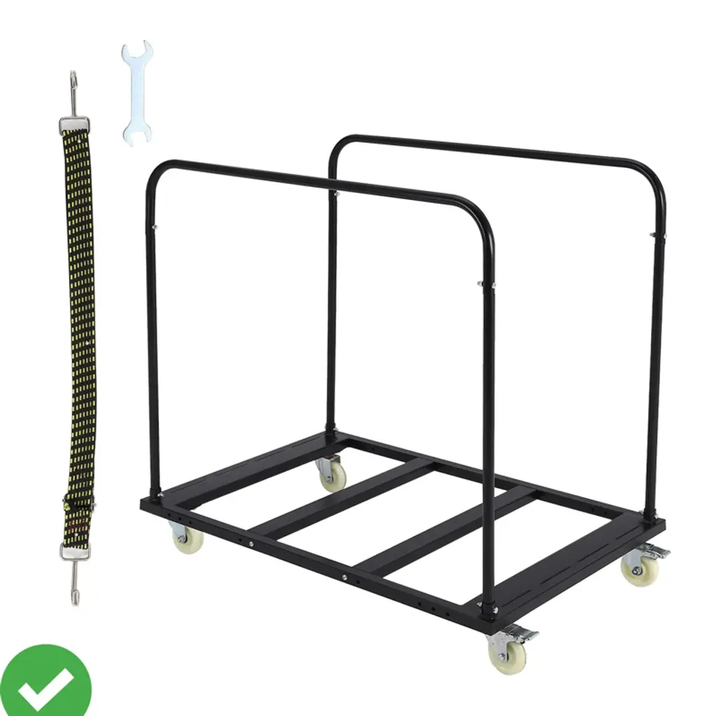 Introducing the Heavy Duty Folding Table Cart, designed for those who value efficiency and strength in transporting tables and other heavy items. With an impressive load capacity of 1800 lbs, this cart is capable of carrying up to 10 tables at a time, making it an essential tool for event planners, caterers, and anyone in need of moving heavy items quickly. Its innovative two-handrail design enhances stability and grip, allowing secure transport of sloped materials. Equipped with four 5-inch swivel casters, this cart ensures smooth mobility and easy navigation, even in tight spaces. Two of these casters feature brakes for secure parking, giving you confidence when setting up and moving around crowded areas. Crafted from durable alloy steel with a powder-coated finish, this cart is built to last, resisting wear and tear while maintaining its sleek appearance. Whether you’re organizing a wedding, a conference, or managing a busy warehouse, this versatile vehicle adapts to your needs. Perfect for various environments, it streamlines logistics, ensuring you can focus on what matters most. Experience the convenience and reliability of our Heavy Duty Folding Table Cart today!