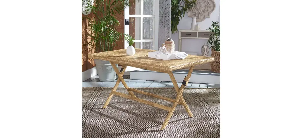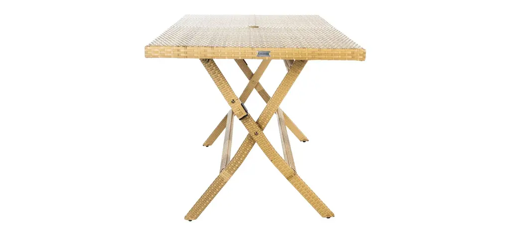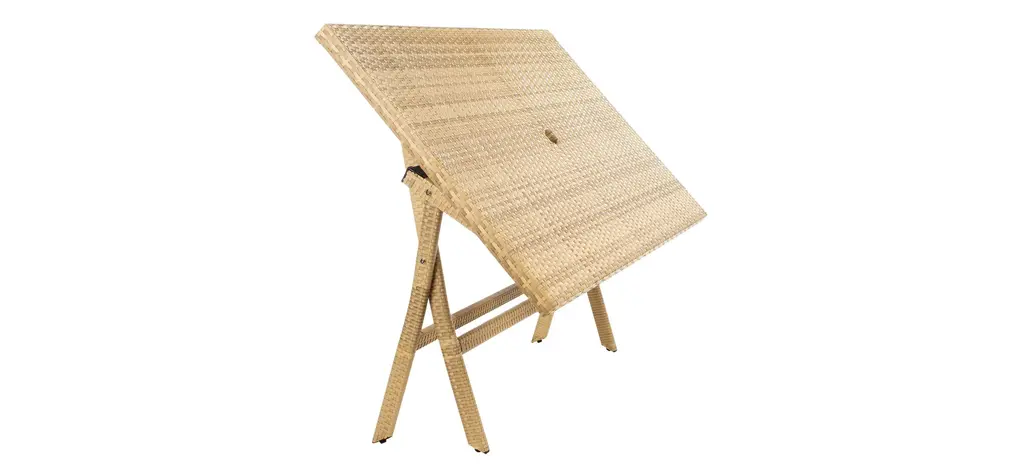 The Neval table perfectly blends the functionality of a folding table with the high style needed for chic outdoor dining. Styled in decor smart gray, Neval's texture rich surface features a cut out in the center for umbrellas, allowing you stay protected from the sun's harsh rays.