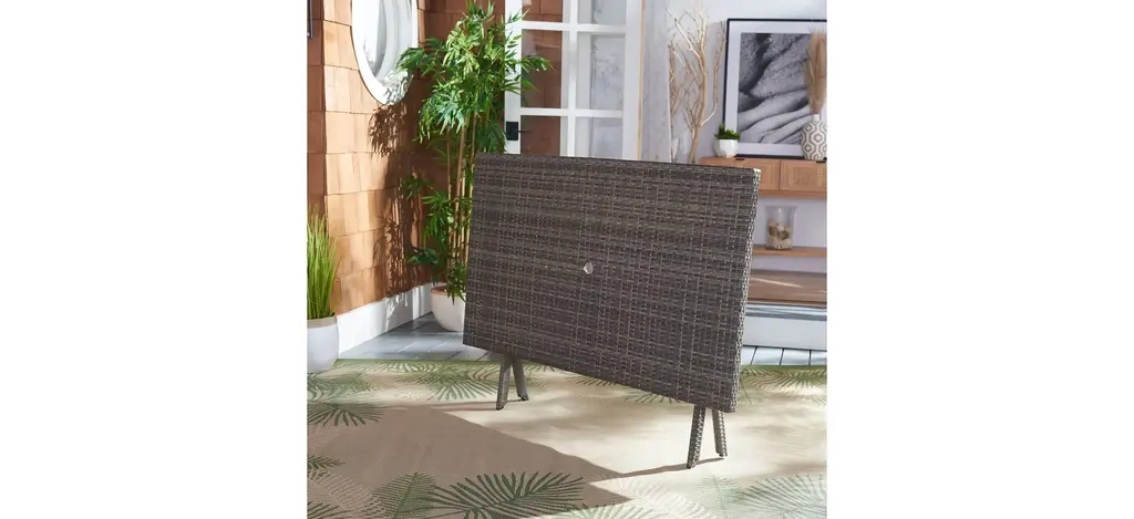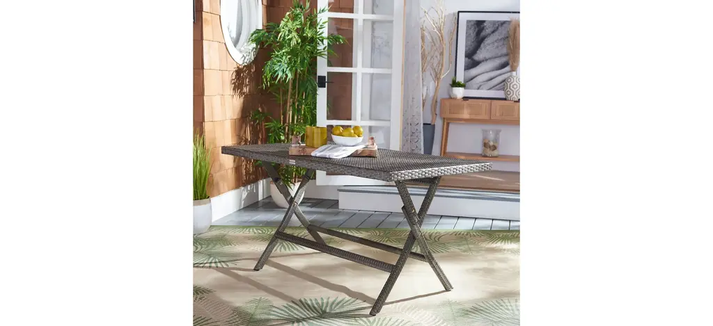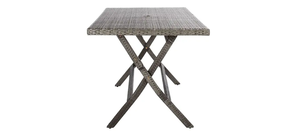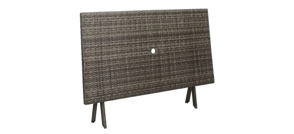 The Neval table perfectly blends the functionality of a folding table with the high style needed for chic outdoor dining. Styled in decor smart gray, Neval's texture rich surface features a cut out in the center for umbrellas, allowing you stay protected from the sun's harsh rays.