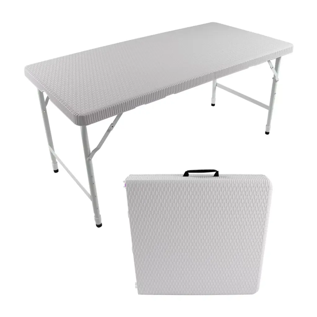 Paged 4Ft Rattan Folding Table Patio Dining Table With Fixed Grip And Waterproof Table Top For Patio, Deck, Poolside, Brown