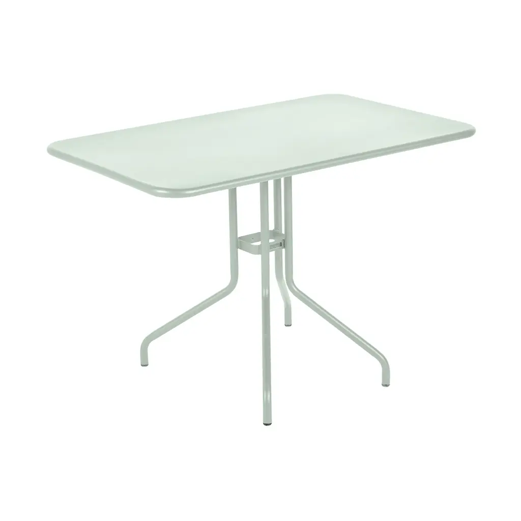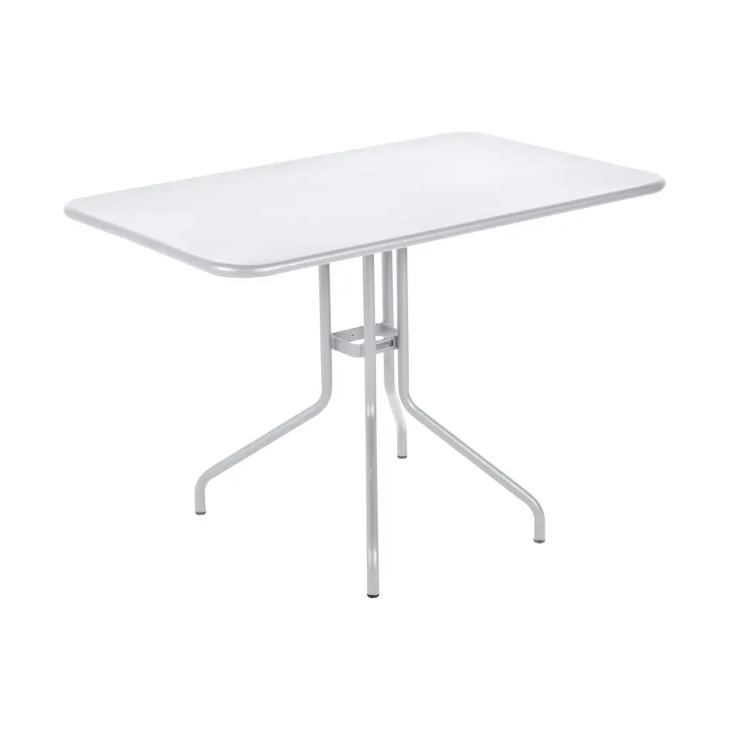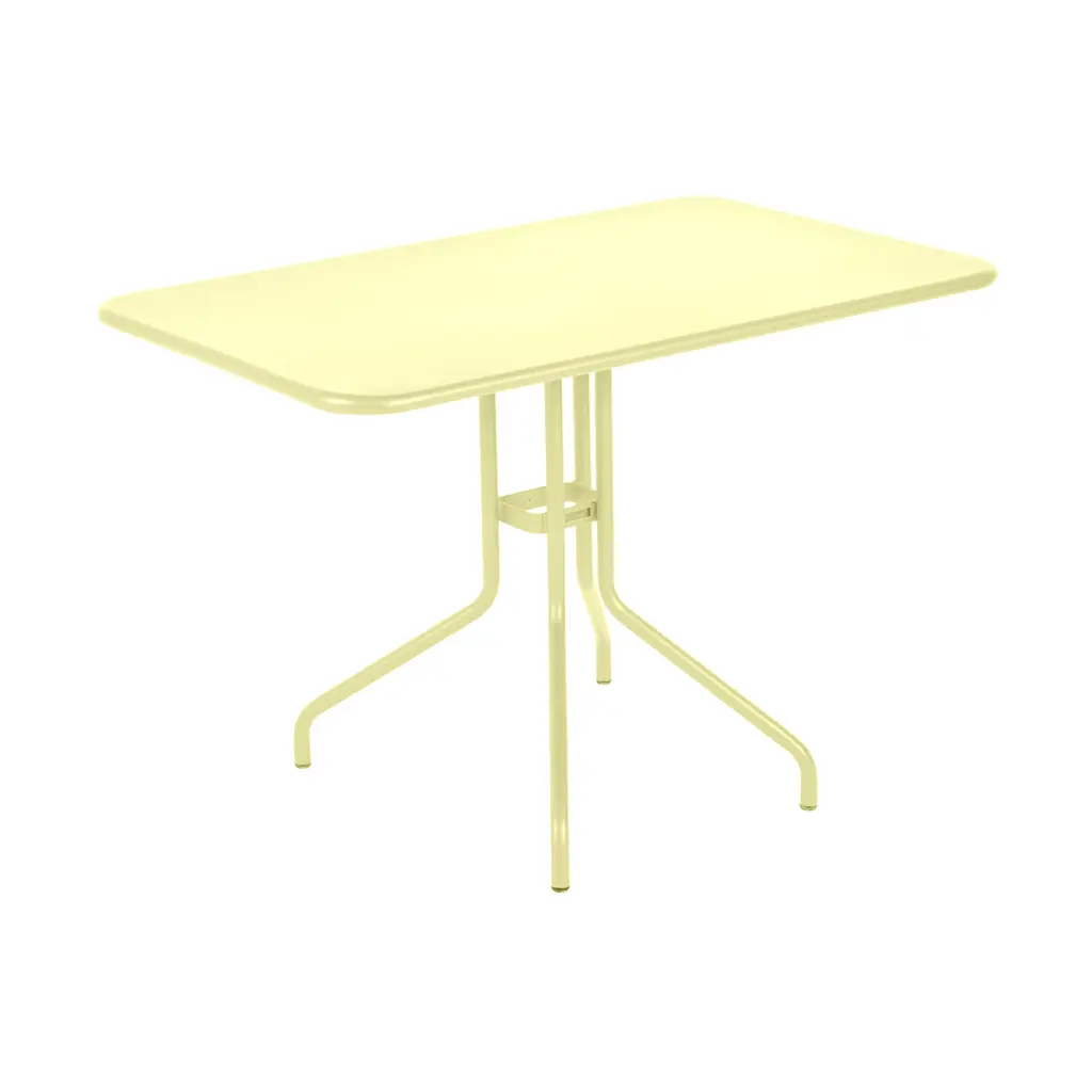 The Petale Folding Table 28 in x 24 in by Fermob is a romantic café table for two. This eye-pleasing Philippe Mathieu design showcases a square top with rounded sides and a sturdy pedestal base with angled-out legs for spacious, comfortable dining. Designed for outdoor use with a UV-resistant coating, the steel table features a tubular base with a solid sheet table top that folds away for space-saving storage. Dinner for 4 on the patio? It will always be a pleasant experience with the Petale Folding Table 43” x 28” by Fermob. A reinforced pedestal base with plenty of legroom supports a rectangular steel sheet top with rounded sides for comfortable dining. The folding top allows for space-saving storage and a steel flap handle and protective stoppers make the job painless and easy. Created for outdoor dining, the folding table suits both residential and commercial settings. Features