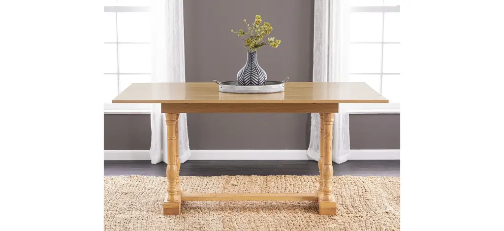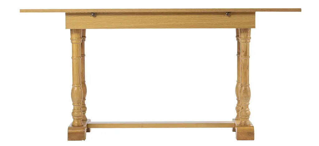 Raphael Farmhouse Folding Table design easily expands from a console to a dining table, while turned legs and a double pedestal base create a modern farmhouse look. Place in your kitchen to enjoy meals with family and friends, or station in your entryway to display flowers, photos, and d_cor. Maximize your living space with this multifunctional table in your dining area or living room.