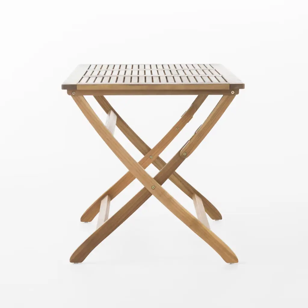 This foldable dining table, made from weather-resistant acacia wood, features an X-shaped base and slatted top to prevent water accumulation. Its foldable design allows easy storage, while seating up to four with grey/natural/white finishes to suit outdoor spaces. Perfect for backyard barbecues and gatherings, it’s a flexible and practical outdoor furniture choice.