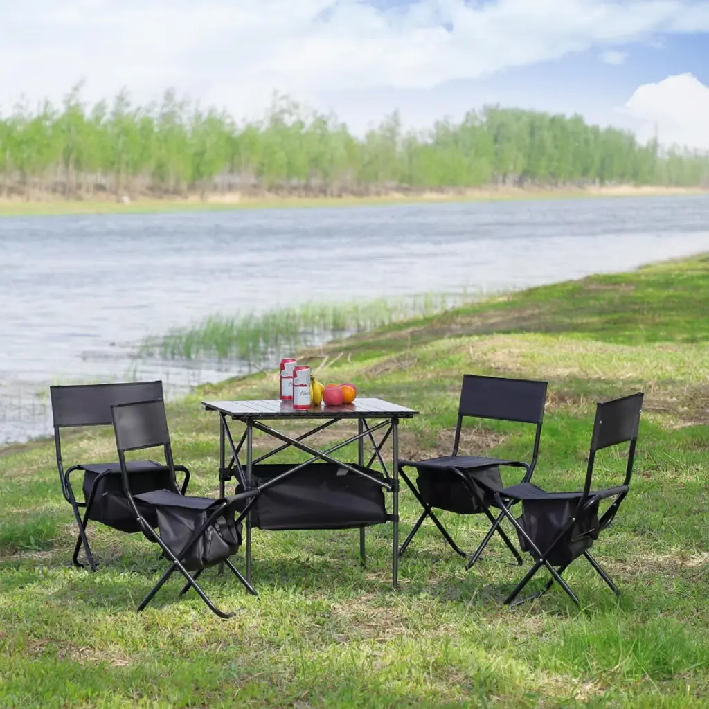 Sevobal Outdoor Portable Chairs 5Pcs Folding Table And Chair Set With Storage Bag For Patio Garden Backyard Poolside, Black, 27.56"*27.56"*27.56"