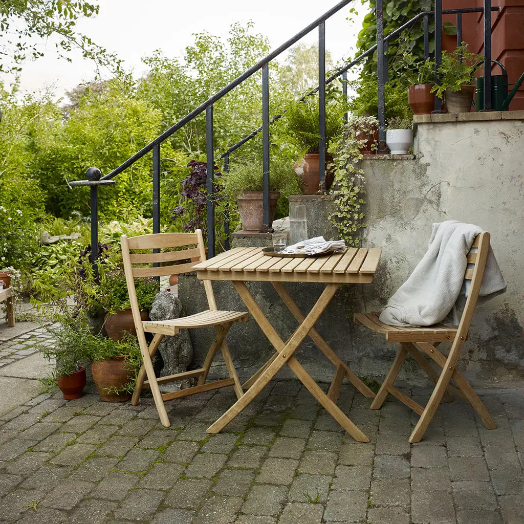 Selandia is sea air at the summer cabin, a cool breeze on the balcony and a wonderful get-together in the garden. The square table is perfect for a small and sunny spot and is easily foldable for storage during winter.