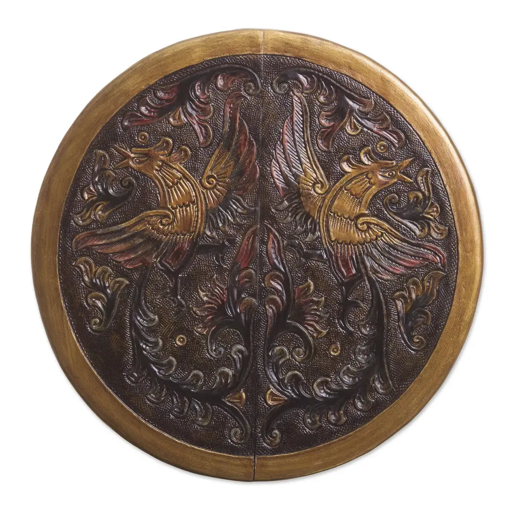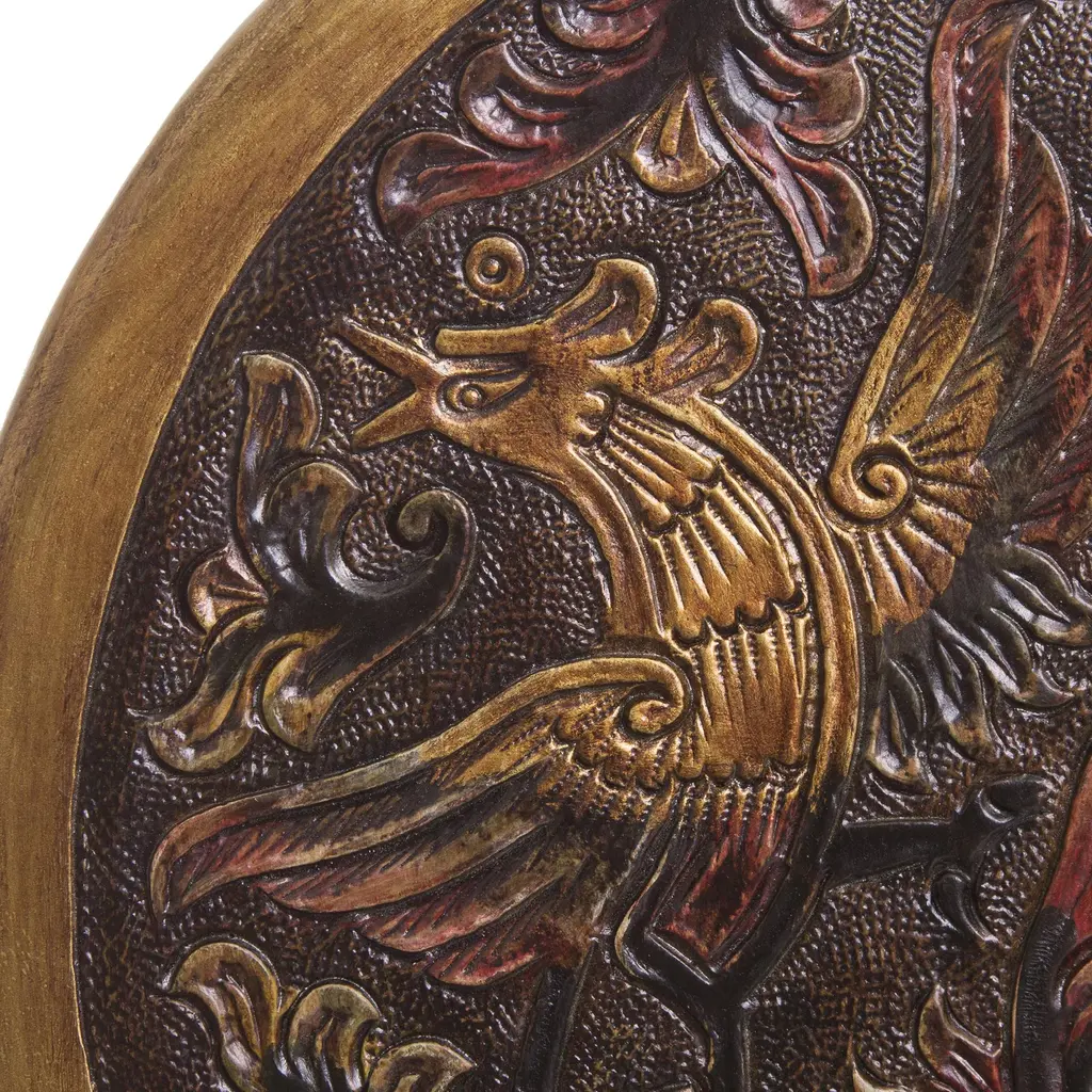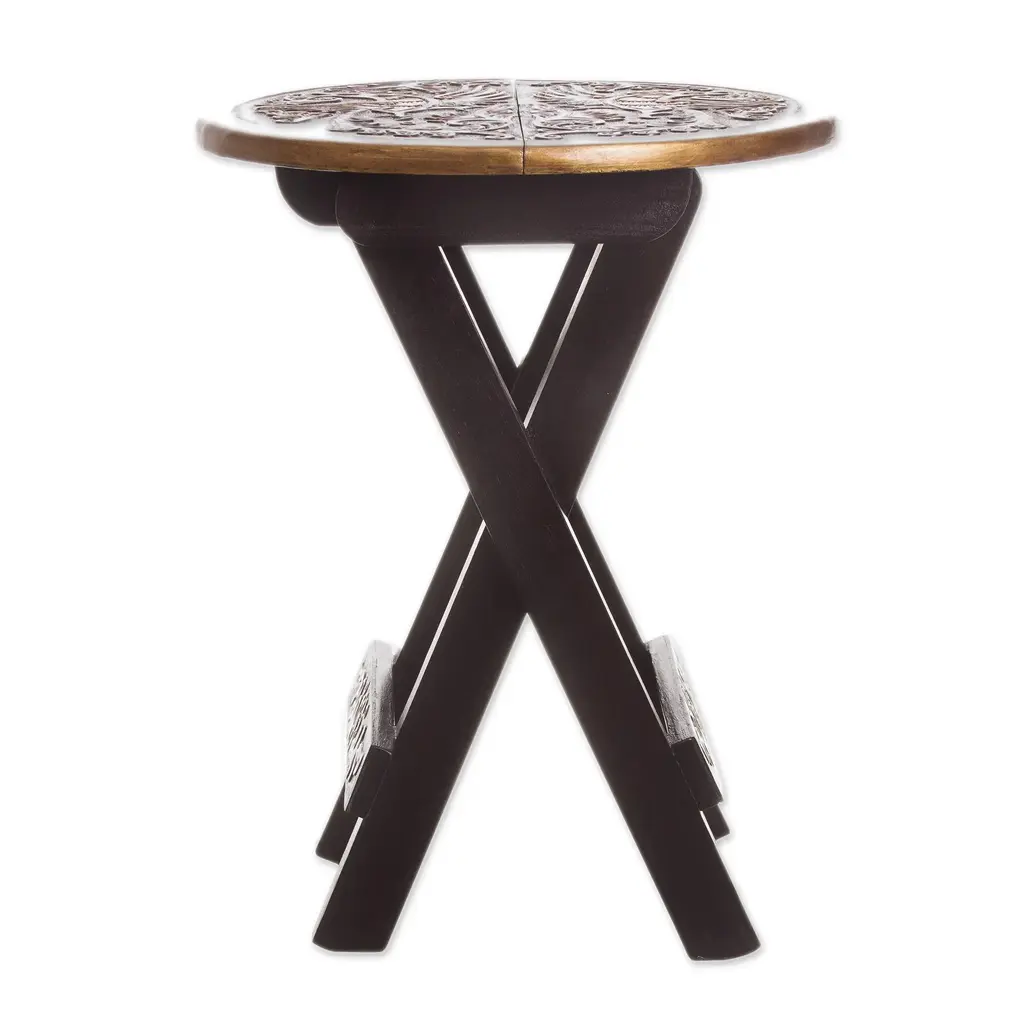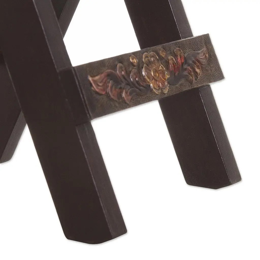 Unique Wood Leather Brown Accent Folding Table- Bird Of Paradise
