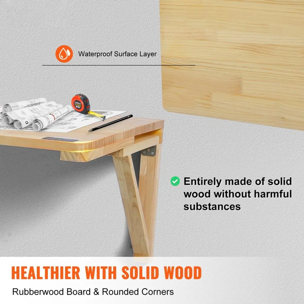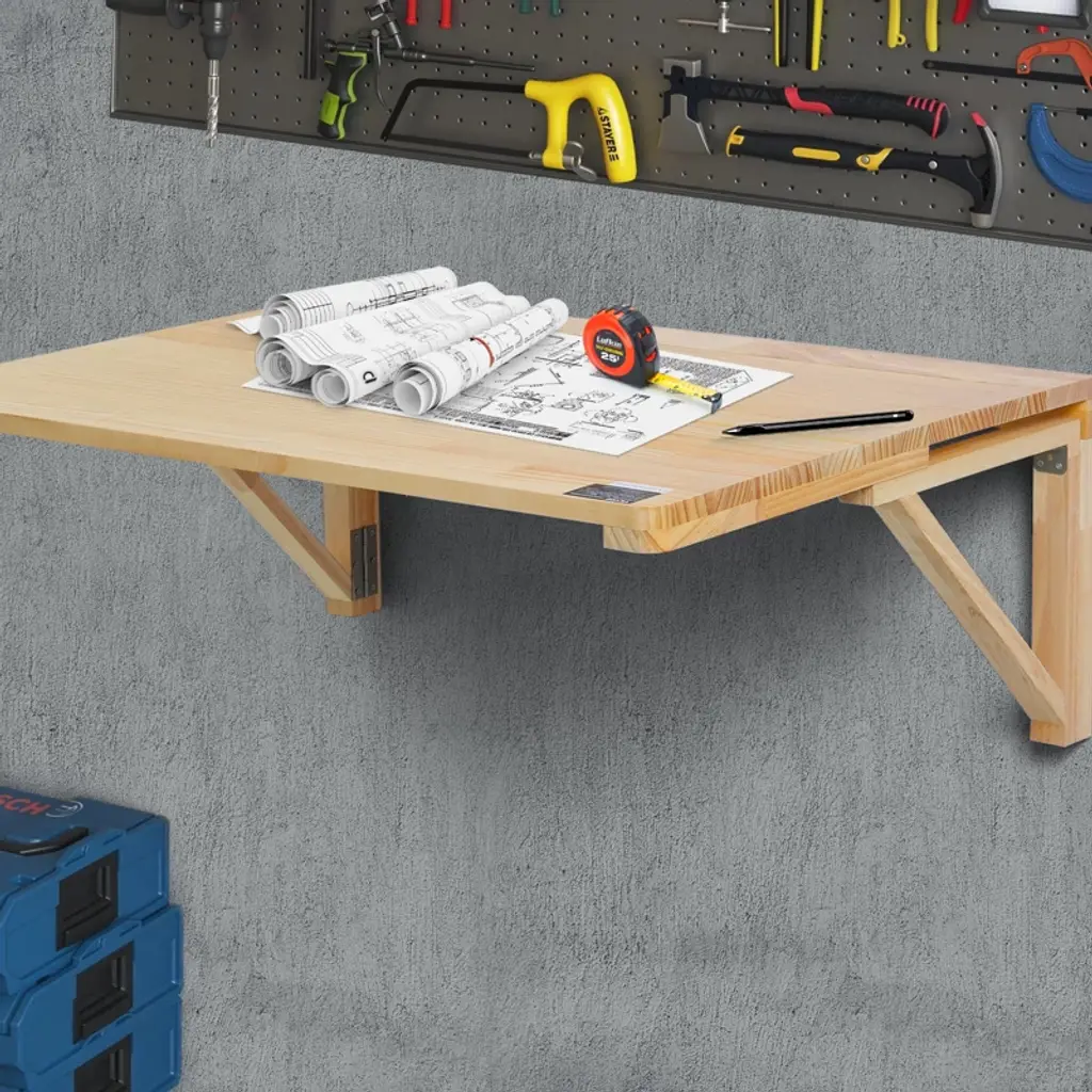 Feature: Premium Material: Crafted from 100% pine wood material, this wall mounted folding table meets comprehensive environmental emission standards, suitable for those who pursue a natural quality of life. Its rounded corner design reduces potential risks from collisions, enhancing security for you and your family. 100 lbs High Load Capacity: Despite its compact size, this wall mounted desk holds up to 100 lbs thanks to its thick 0.7-inch material. It's stable for everything from small tools, large tools, laptops, and heavy books to decor items, ensuring everything stays steady. Space-Saving Design: Designed to save space, this wall desk folds and unfolds quickly, ideal for small spaces. The slow-closing brackets prevent pinching during use, making it ultra-convenient for immediate use without the need for large reserved spaces—just unfold and start working or display items. Easy Installation: Installing our wall mount folding table is a breeze with included installation positioning paper. Pre-marked installation positions on the template allow for quick hole drilling, ensuring a convenient installation process. Versatile Utility: This floating desk features a sleek, modern design that effortlessly fits various decor styles and space requirements. Whether you need an office desk, bedside table, kitchen counter, or living room display shelf, it seamlessly blends in, catering to your diverse needs in different settings. Package Content: 1 x Wall Mounted Table