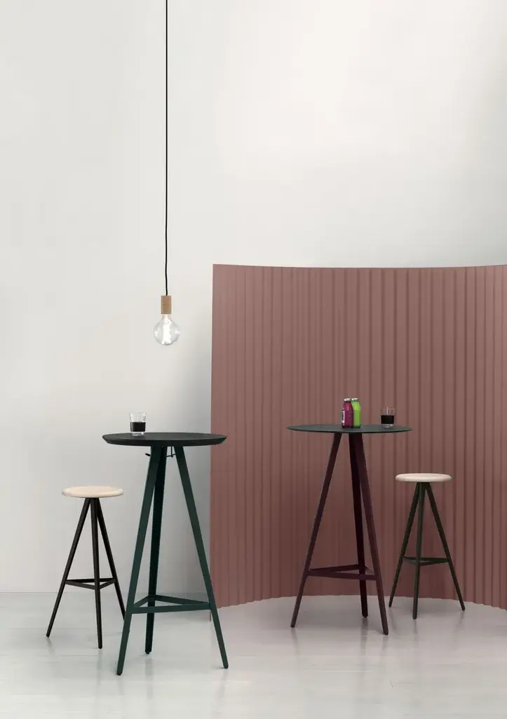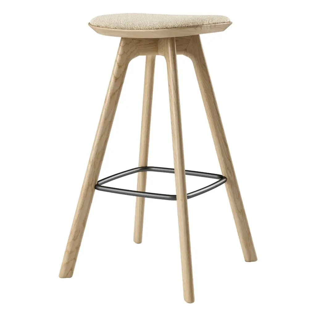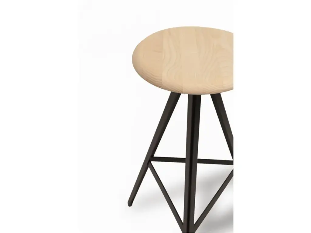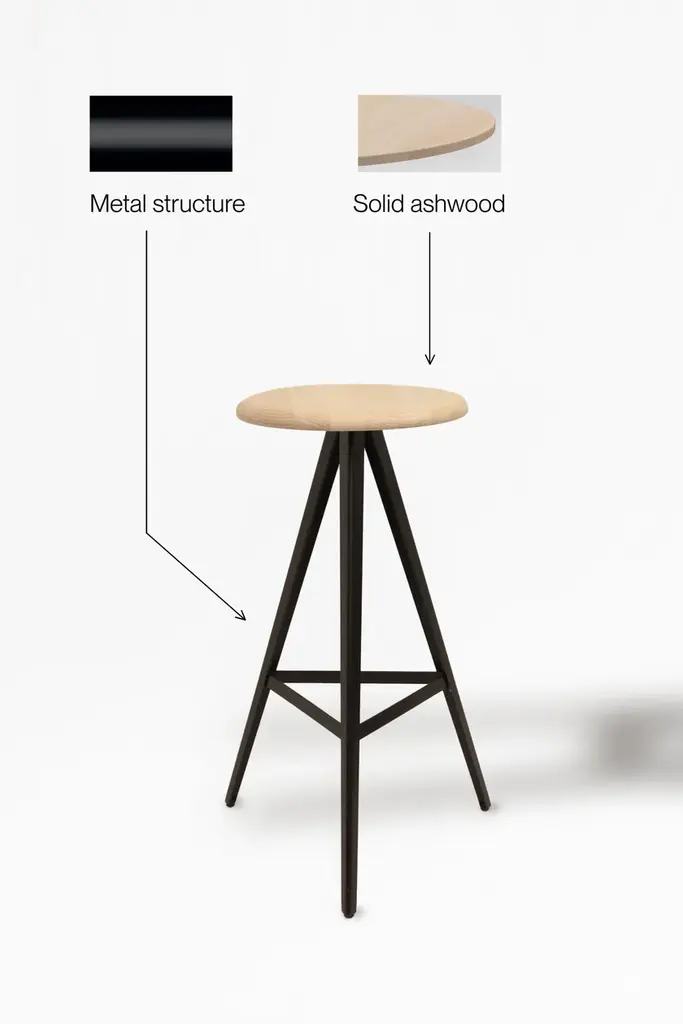 AKY STOOL 61 - LIMITED EDITION is a bar stool with footrest.Made of a black metal frame and a seat in solid bleached ash.Bar stool with painted metal structure and and ash massel seat or padded fabric seat from the AKY collection, designed by Emilio Nanni.