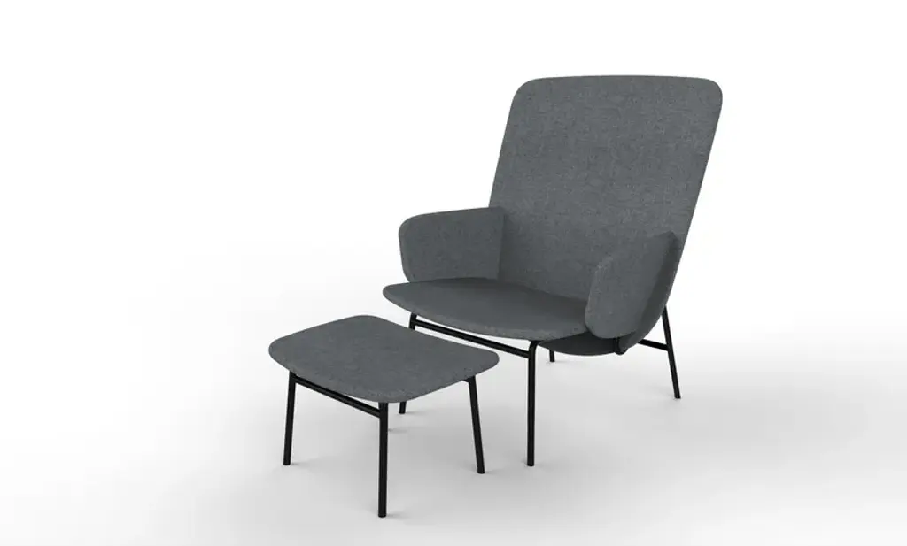 Ala is a footstool with metal base.Ala is a collection of armchairs, sofas and poufs of various sizes that perfectly encapsulates the exacting creative and technical research that goes into every single one of La Cividina’s products. Ala’s originality lies in its visible frames made of metal and coloured or natural solid ash, which support and hold together the backrests, seats and armrests lightly and elegantly. The clean-cut lines embody the company’s ability to adopt solutions in which the master craftsmanship is highlighted by carefully considered combinations of elements. An overall sense of lightness is produced by giving the backrests, seats and armrests a basic form with limited thickness and thin edges. In addition, they are connected to each other using an ingenious technical approach that makes all fastening systems invisible. The curved, comfortable shape of the large backrest cradles the body. There is huge potential for customization because all of the padded parts can be combined to taste, using different fabrics, materials and colours to create playful solutions full of character. Thanks to the vast selection of sizes and heights, Ala is ideal for adding an elegant, intimate touch to seating in homes, hotels and offices.