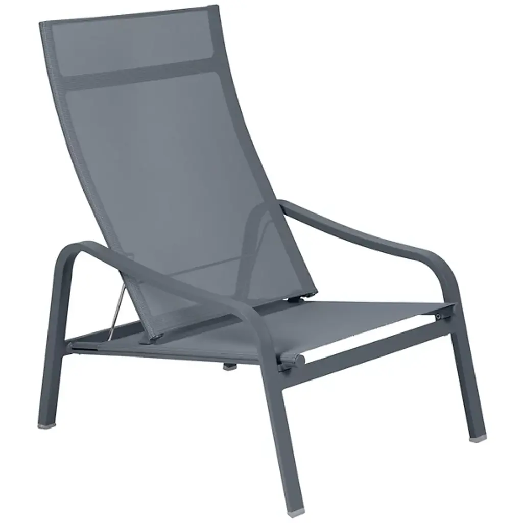 Turn your Alize Armchair into a lounger in an instant. Designed by Pascal Mourgue, the Alize Footrest by Fermob clips onto the end of the chair to allow its occupant to stretch out and enjoy the fresh air. It starts with an aluminum and steel wire frame, across which Outdoor Technical Fabric (OTF) is stretched tautly for airy support. The OTF is also resistant to tears, mold and stains, making it great for everyday outdoor use. When not in use, this footstool slides under the chair and out of the way.