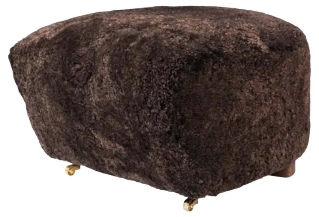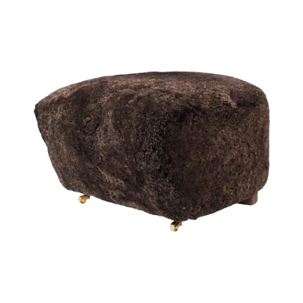 Antrachite smoked oak sheepskin the tired man footstool by LassenDimensions: W 55 x D 53 x H 36 cm Materials: SheepskinFlemming Lassen designed the overstuffed easy chair, The Tired Man, for The Copenhagen Cabinetmakers’ Guild Competition in 1935. It is characterised by organic, bearlike shapes and then as now it created a sensation with its curved form and voluminous armrests. Sitting in the chair should, in Flemming Lassen’s own ords, be ”as warm and safe as a polar bear cub in the arms of its mother in the middle of the ice cap”. The family man Flemming Lassen valued intimate relationships - with its warm exterior, The Tired Man invokes domestic cosiness and socialising by candlelight.By Lassen is a Danish design brand focused on iconic designs created by Mogens and Flemming Lassen, founded by Lassens’ relatives in 2008. Brothers Mogens (1901-1987) and Flemming (1902-1984) Lassen are known as two of Denmark’s greatest architects and designers. Both were renowned pioneers of Danish functionalism and modernist architecture, honoured with numerous prestigious medals and awards. Headed by Mogens Lassen’s grandson Søren Lassen, By Lassen carries on the brothers’ design philosophy by manufacturing their iconic designs as well as products by other designers that complement the Lassen’s functionalist style. The company’s mission is to continue the tradition of timelessness, functionality and quality, and to introduce the Lassen’s design heritage to new generations.