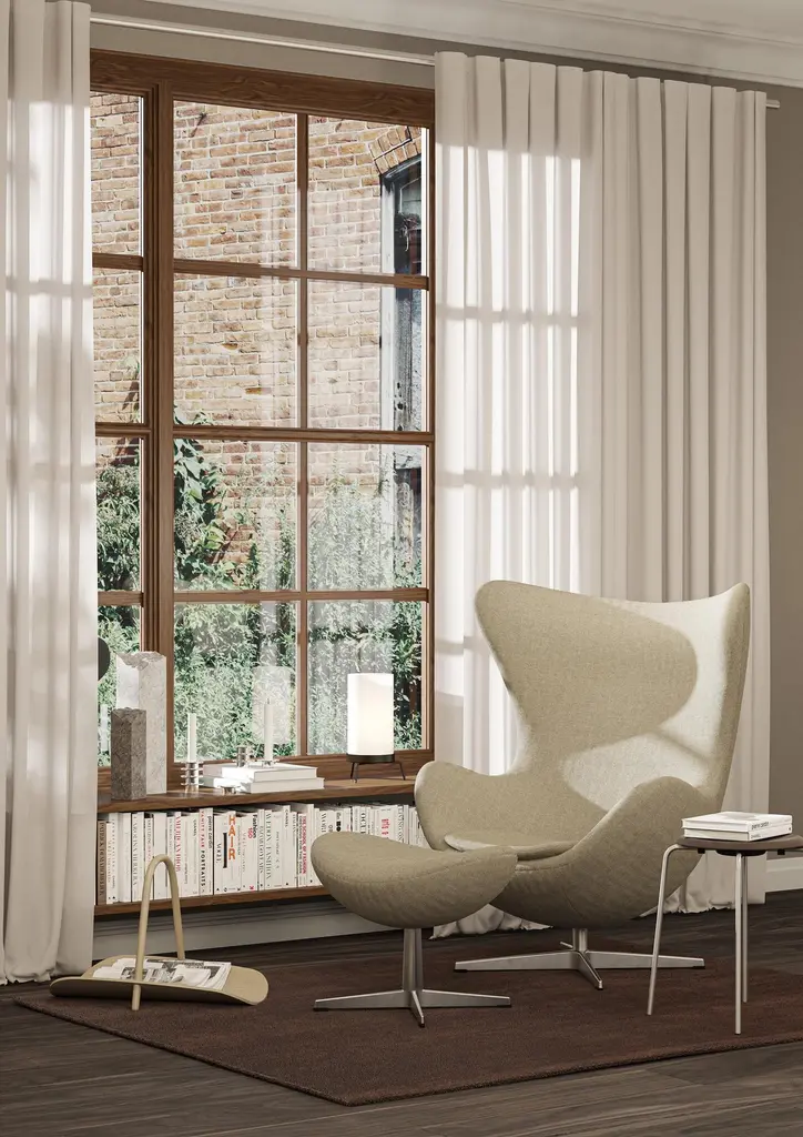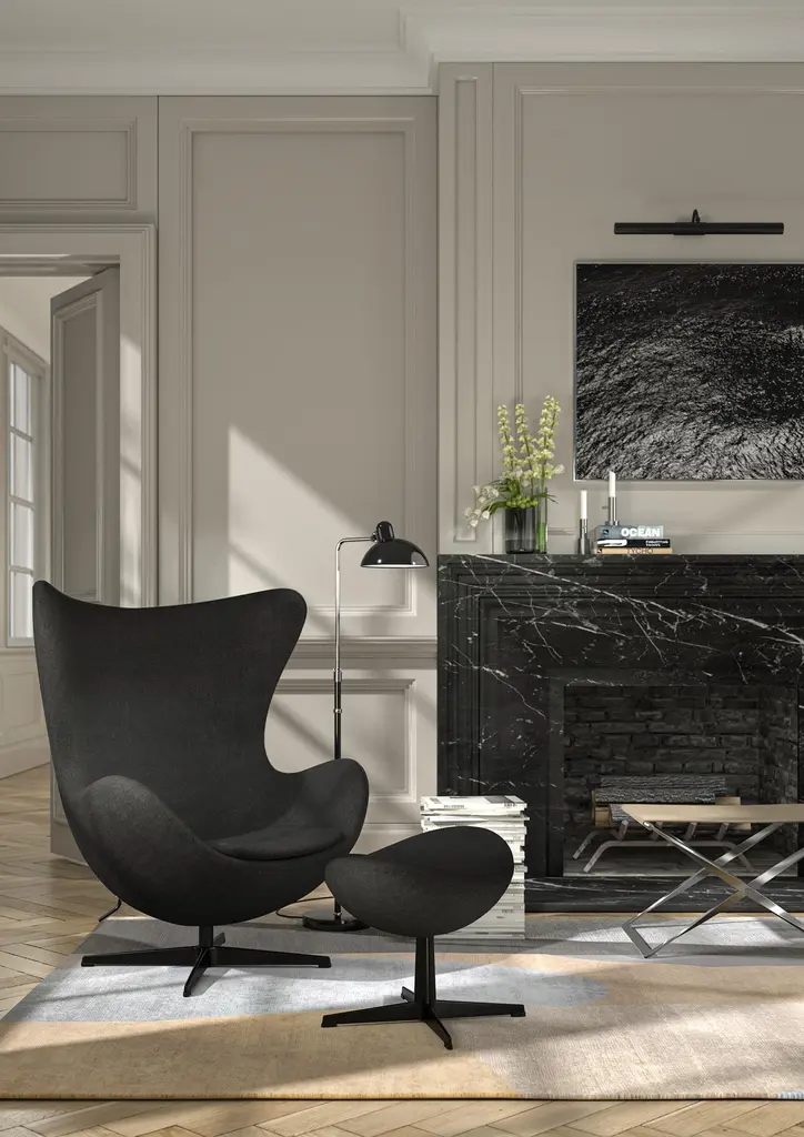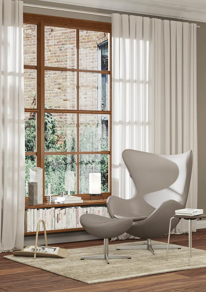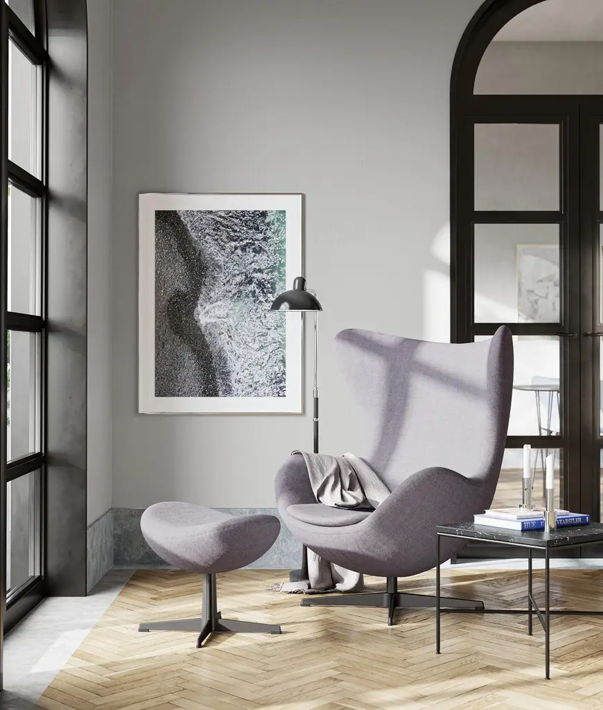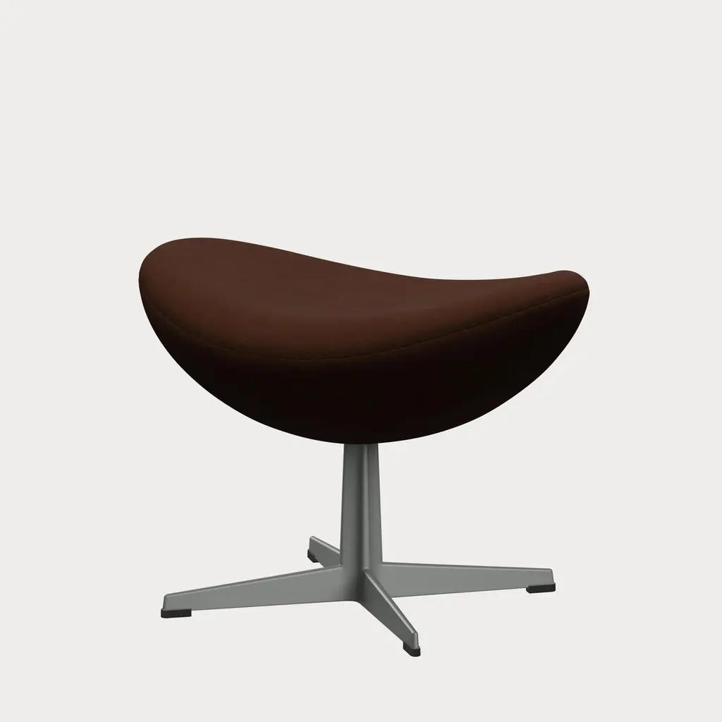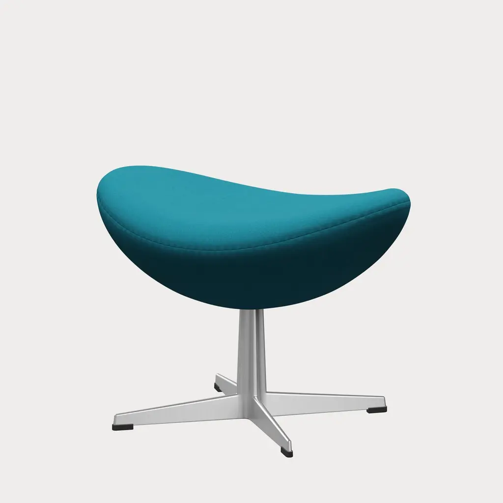 Arne Jacobsen 'Egg' Footstool for Fritz Hansen in Fabric Upholstery (Cat. 3).Established in 1872, Fritz Hansen has become synonymous with legendary Danish design. Combining timeless craftsmanship with an emphasis on sustainability, the brand’s re-editions of iconic pieces from such Danish Modern greats as Arne Jacobsen, Hans J. Wegner, and Vico Magistretti pay homage to the originals while thoughtfully incorporating innovation and responsibly sourced materials.The 'Egg' chair and its accompanying footstool has remained an iconic piece of design history since its conception by Arne Jacobsen in 1958. Like a sculptor, Jacobsen strived to shape the shell by experimenting with wire and plaster in his garage. Today, it is recognized worldwide as one of the triumphs of Jacobsen’s legendary career and a monumental achievement in Scandinavian craftsmanship. This re-edition by Fritz Hansen remains faithful to the designer's vision and is executed using only the highest quality materials. Price is per item. Available in unlimited quantities in five different fabric or leather groups and with brushed aluminum or powder-coated base in four color options: black, bronze, silver gray, or warm graphite. Prices vary; please inquire for most accurate quotes for other material and base combinations. List price reflects the 'Egg' footstool with Category 3 fabric group. Kindly specify color when ordering (see swatches).In stock lead time of 12-16 weeks. Out of stock can add an additional 8 weeks or more. Please note that lead times, cost and inventory availability are subject to change without notice. Please inquire for current lead times prior to placing time sensitive orders.Please note that all Fritz Hansen furniture pieces must ship directly from the manufacturer; as such, 1stDibs arranged shipping is not an option. Local pickup from our Los Angeles based showroom, however, is available. Kindly contact us for the most accurate shipping rates prior to purchasing.Made to order. All sales final.
