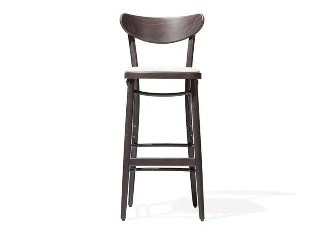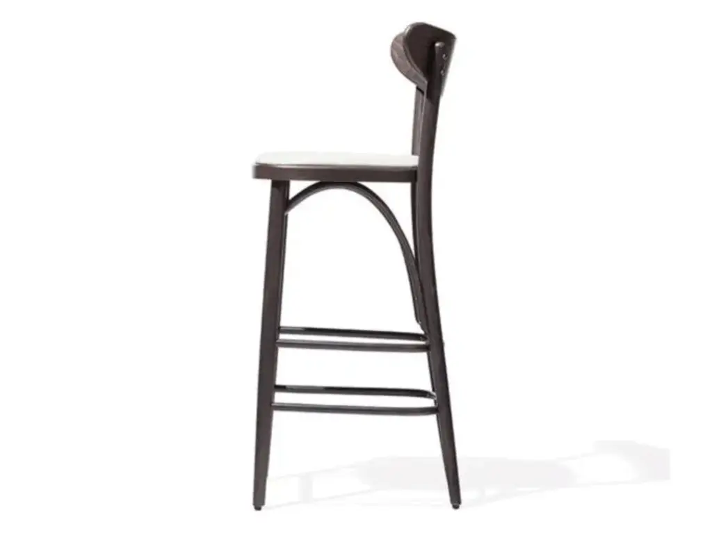 A barstool of the Banana model got its name from a banana-shaped plywood backrest. The rest of its frame is based on the technology of manual bending of beech logs.