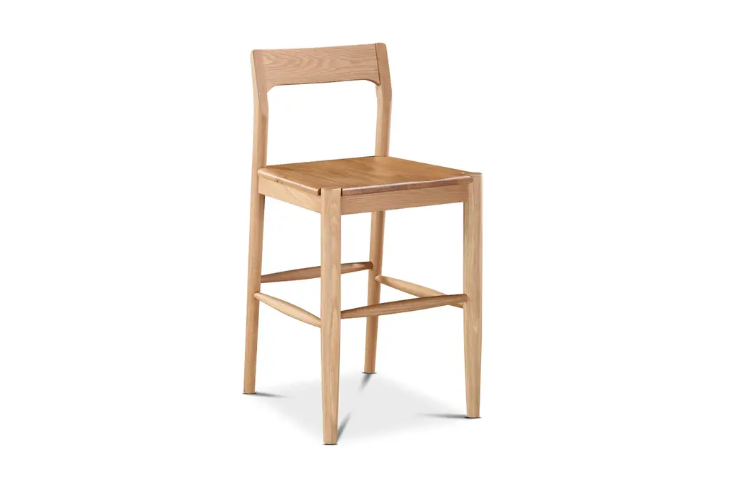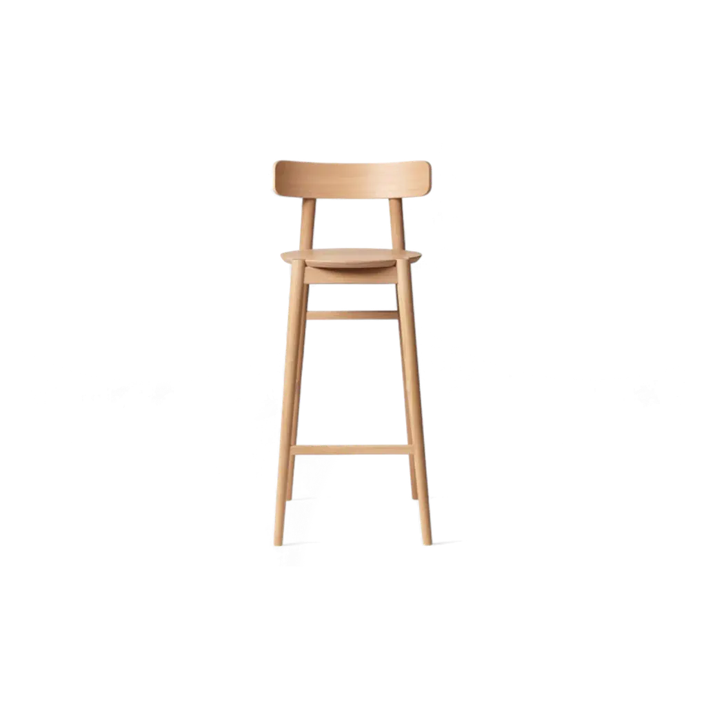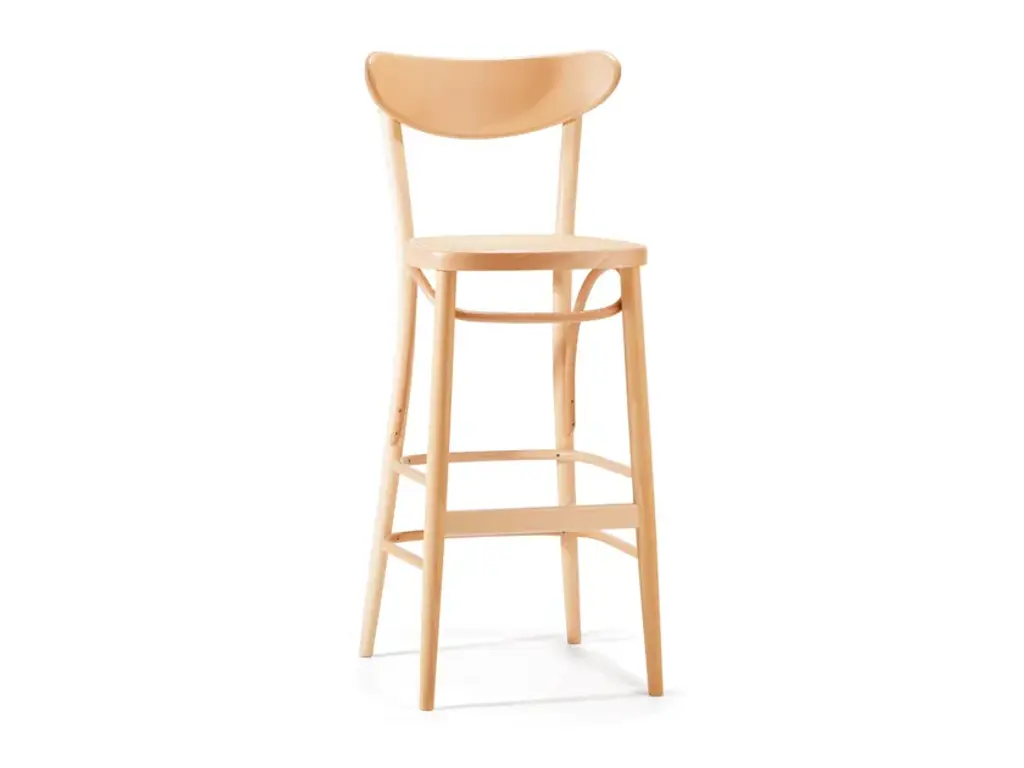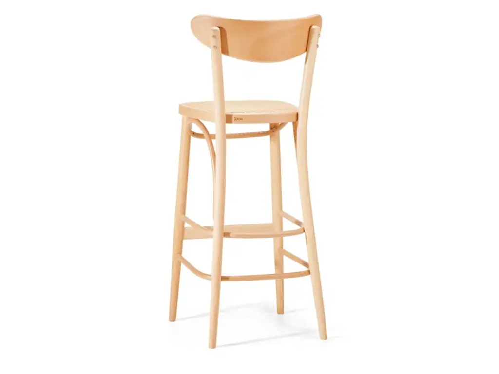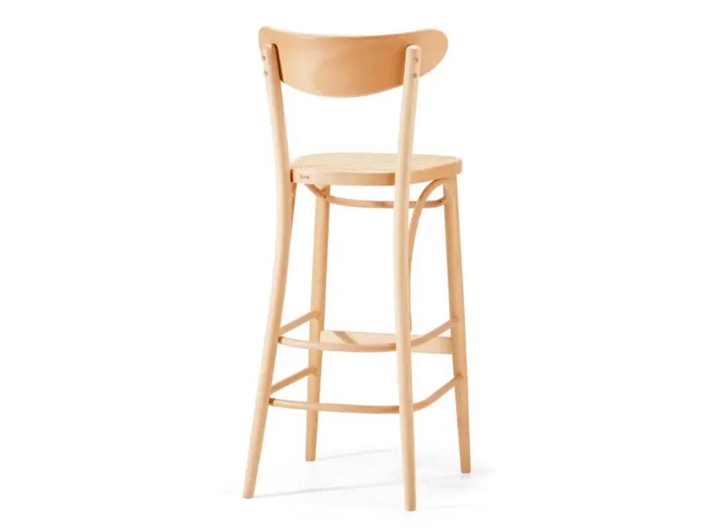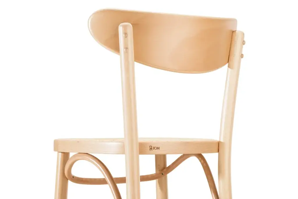 A barstool of the Banana model got its name from a banana-shaped plywood backrest. The rest of its frame is based on the technology of manual bending of beech logs.