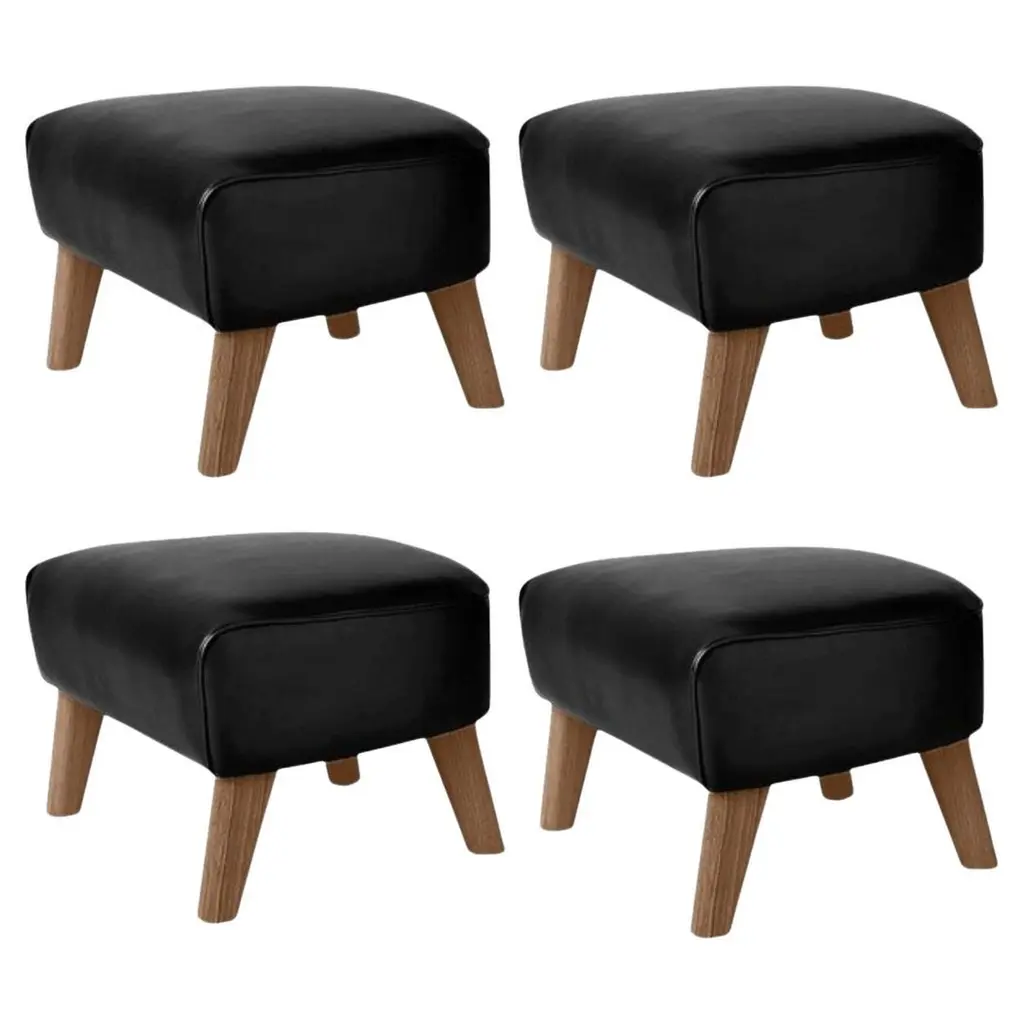 Black Leather And Smoked Oak My Own Chair Footstools By Lassen, Set Of 4