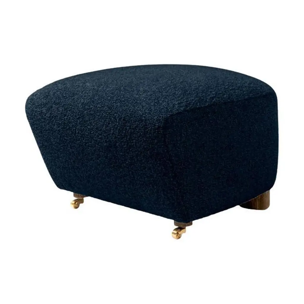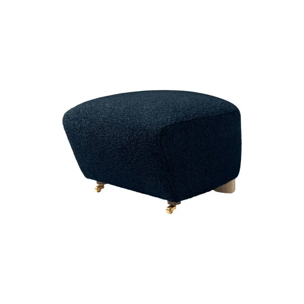 Blue natural oak sahco zero the tired man footstool by Lassen.Dimensions: W 55 x D 53 x H 36 cm. Materials: TextileFlemming Lassen designed the overstuffed easy chair, The Tired Man, for The Copenhagen Cabinetmakers’ Guild Competition in 1935. It is characterised by organic, bearlike shapes and then as now it created a sensation with its curved form and voluminous armrests. Sitting in the chair should, in Flemming Lassen’s own ords, be ”as warm and safe as a polar bear cub in the arms of its mother in the middle of the ice cap”. The family man Flemming Lassen valued intimate relationships - with its warm exterior, The Tired Man invokes domestic cosiness and socialising by candlelight.By Lassen is a Danish design brand focused on iconic designs created by Mogens and Flemming Lassen, founded by Lassens’ relatives in 2008. Brothers Mogens (1901-1987) and Flemming (1902-1984) Lassen are known as two of Denmark’s greatest architects and designers. Both were renowned pioneers of Danish functionalism and modernist architecture, honoured with numerous prestigious medals and awards. Headed by Mogens Lassen’s grandson Søren Lassen, By Lassen carries on the brothers’ design philosophy by manufacturing their iconic designs as well as products by other designers that complement the Lassen’s functionalist style. The company’s mission is to continue the tradition of timelessness, functionality and quality, and to introduce the Lassen’s design heritage to new generations.