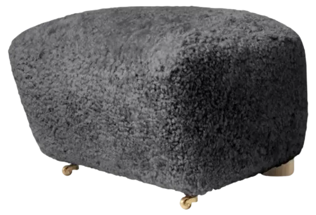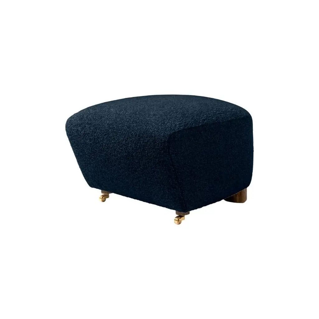 Blue smoked oak sahco zero the tired man footstool by Lassen.Dimensions: W 55 x D 53 x H 36 cm. Materials: Textile.Flemming Lassen designed the overstuffed easy chair, The Tired Man, for The Copenhagen Cabinetmakers’ Guild Competition in 1935. It is characterised by organic, bearlike shapes and then as now it created a sensation with its curved form and voluminous armrests. Sitting in the chair should, in Flemming Lassen’s own ords, be ”as warm and safe as a polar bear cub in the arms of its mother in the middle of the ice cap”. The family man Flemming Lassen valued intimate relationships - with its warm exterior, The Tired Man invokes domestic cosiness and socialising by candlelight.By Lassen is a Danish design brand focused on iconic designs created by Mogens and Flemming Lassen, founded by Lassens’ relatives in 2008. Brothers Mogens (1901-1987) and Flemming (1902-1984) Lassen are known as two of Denmark’s greatest architects and designers. Both were renowned pioneers of Danish functionalism and modernist architecture, honoured with numerous prestigious medals and awards. Headed by Mogens Lassen’s grandson Søren Lassen, By Lassen carries on the brothers’ design philosophy by manufacturing their iconic designs as well as products by other designers that complement the Lassen’s functionalist style. The company’s mission is to continue the tradition of timelessness, functionality and quality, and to introduce the Lassen’s design heritage to new generations.