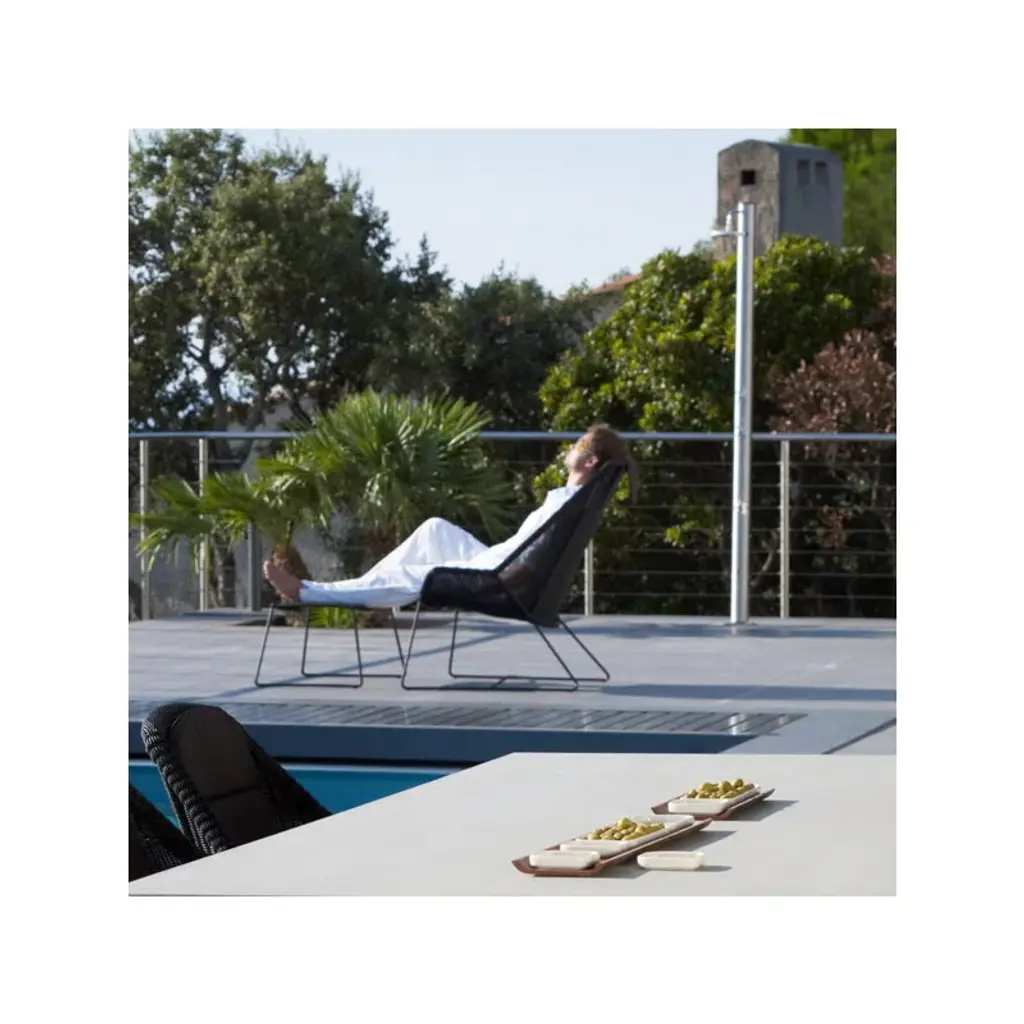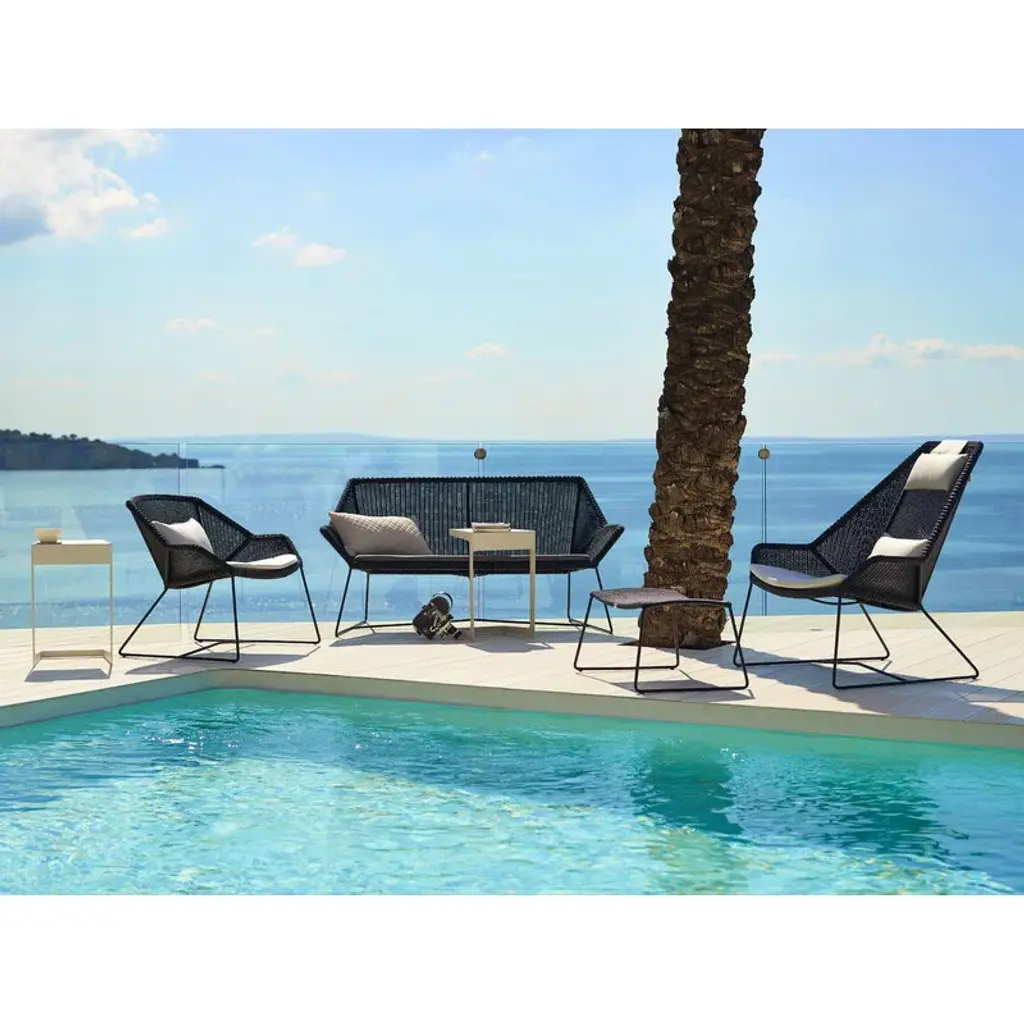 Cane-line’s Breeze footstool was developed for outdoor use in all weather conditions. Designed by the Danish duo Strand + Hvass, formed by Christina Strand and Niels Hvass, the Breeze stool has a sleek steel frame and a light, elegant look. The Breeze footstool is a perfect match for the lounge chair and the highback chair from the same collection. The Breeze outdoor furniture series combines modern looks and great seating comfort with maintenance-free materials. Cane-line Weave is a fiber made of dyed and hard-wearing polyethene. Its water-resistant features make it withstand large temperature differences, making it excellent for outdoor use. The structure of the fibers and the weave provide flexibility and comfort, and the material is UV-resistant and overall maintenance-free: it maintains its colors and shape for years on end.