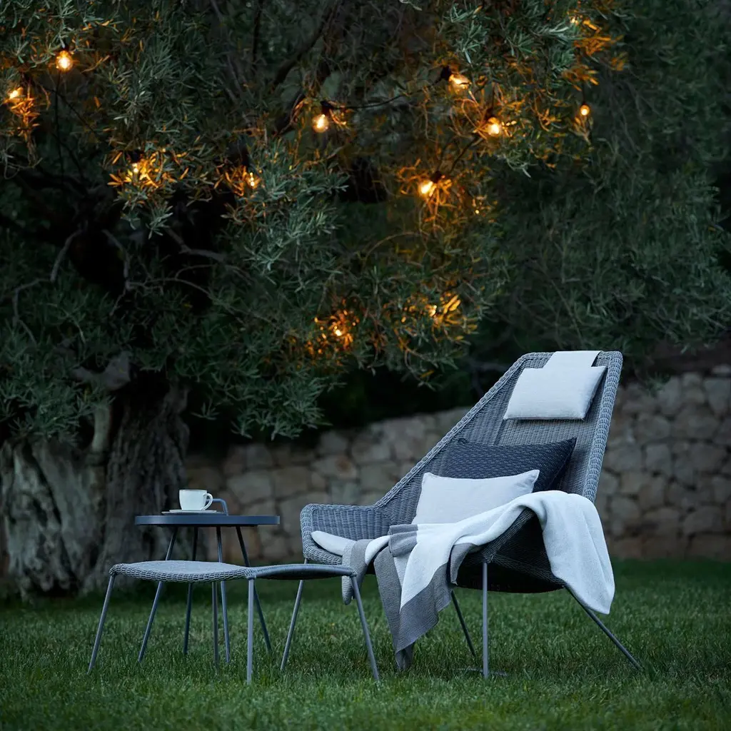 The Breeze outdoor garden furniture series has been created by danish designers STRAND+HVASS. The beautiful footstool matches the highback sunchair or lounge chair perfect. The black weave is reminiscent of the 60's – a new modernity with links to past and present. Breeze combines design with the handcraftsmanship; craftsmanship that is carried out at Cane-line's own carefully monitored workshops in Indonesia.