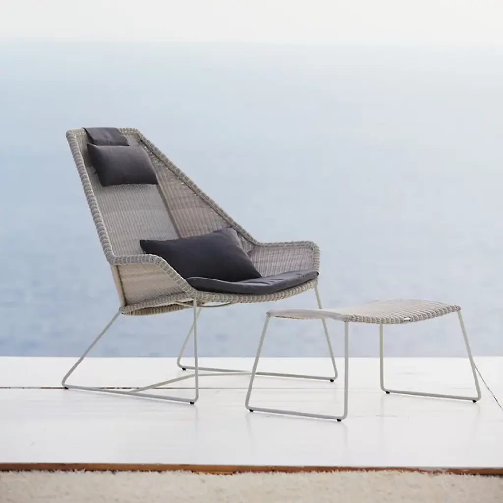A refreshing way to rest your feet. The Cane-line Breeze Outdoor Footstool is the perfect complement to the Breeze lounge chairs, with its powder coated wire frame and Cane-line Weave top (an all-weather wicker made out of UV- and water-resistant polyethylene). When not in use, this low-slung stool is easily tucked away underneath its respective chair.
