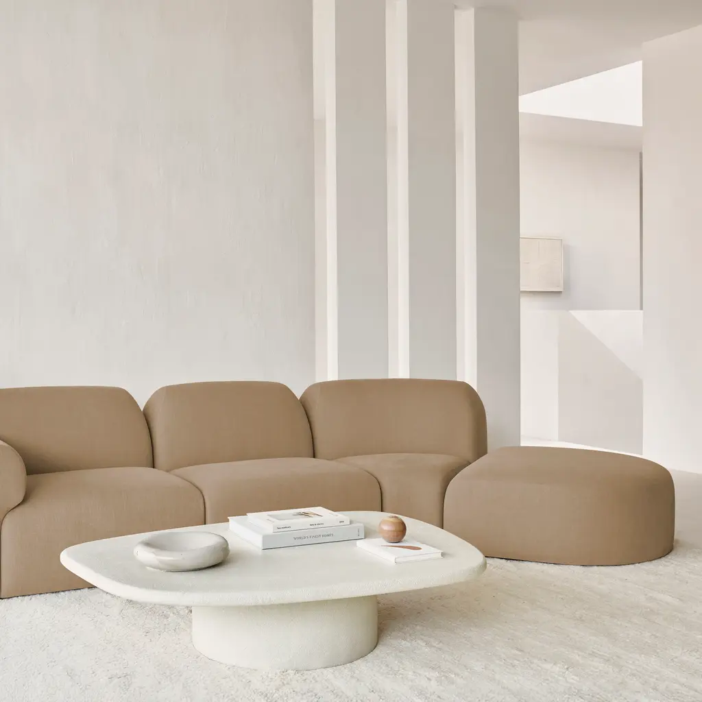 The Bulky Footstool from Ethnicraft embodies simplicity and versatility with its seamless mono-volume design, softened by rounded corners and subtle stitching. Upholstered in luxurious fabric, it offers lasting comfort and understated elegance. Perfectly adaptable, it complements any space and pairs effortlessly with the Bulky modular sofa for a personalized, sophisticated seating arrangement. Highlights