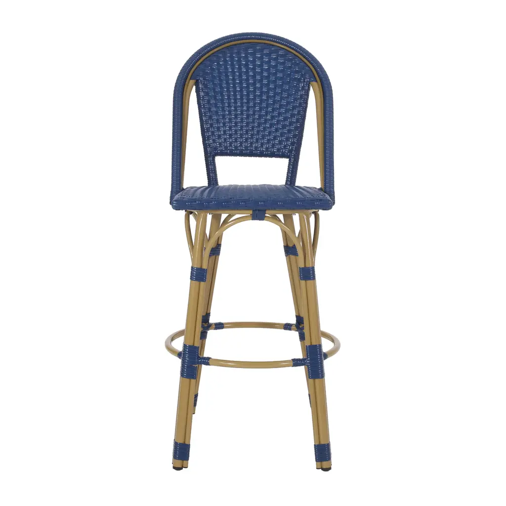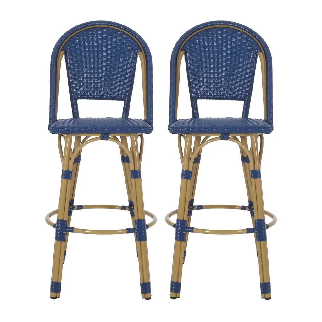 Elevate your outdoor gatherings with these stylish barstools, designed to bring an outdoor cafe vibe to your home. Featuring a classic curvaceous structure and durable woven wicker, these barstools offer both sophistication and comfort. The intricate details and versatile appearance make them a seamless addition to any outdoor decor. Enjoy the transformation these charming stools bring to your space, available as a set of two.