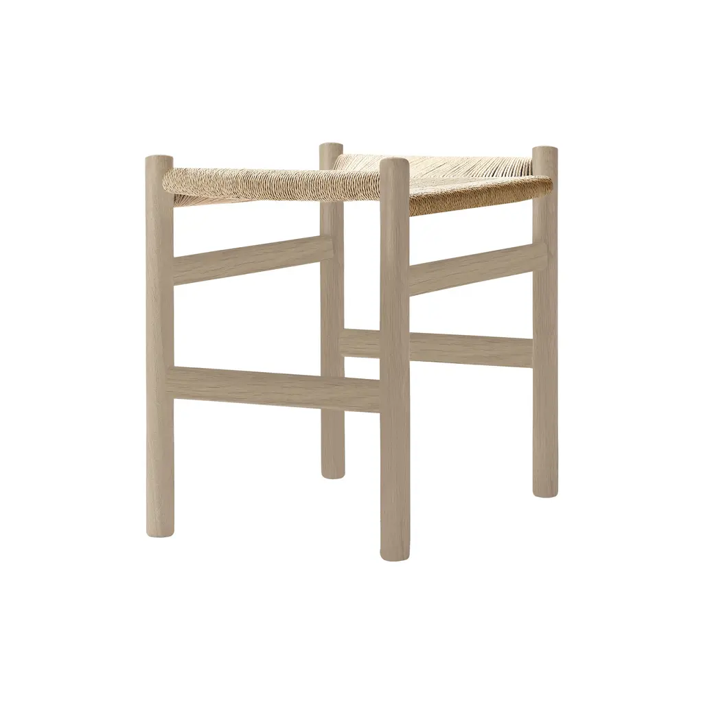 Inspired by the Shaker ideal of simplicity and utility, Hans J. Wegner designed this solid hardwood stool in 1966 and it clearly demonstrates his passion for craftsmanship and everyday functionality. CH53 serves equally well on its own, in groups or paired with one of Wegner's classic lounge chairs like the CH44. Faultlessly realized in either oak or beech with a wide range of finishes and a handwoven seat in natural or black paper cord, it also comes in a choice of 2 heights.
